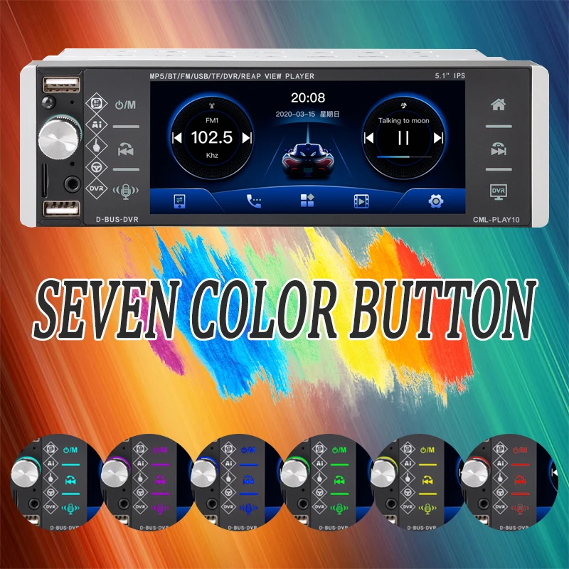 Автомобильный плеер 1din Mp5, сенсорный автомобильный радиоприемник, двунаправленное подключение, RDS, AM, FM, 4-USB, 5,1 дюйма, Поддержка Android 10, Mirrorlink, Bluetooth