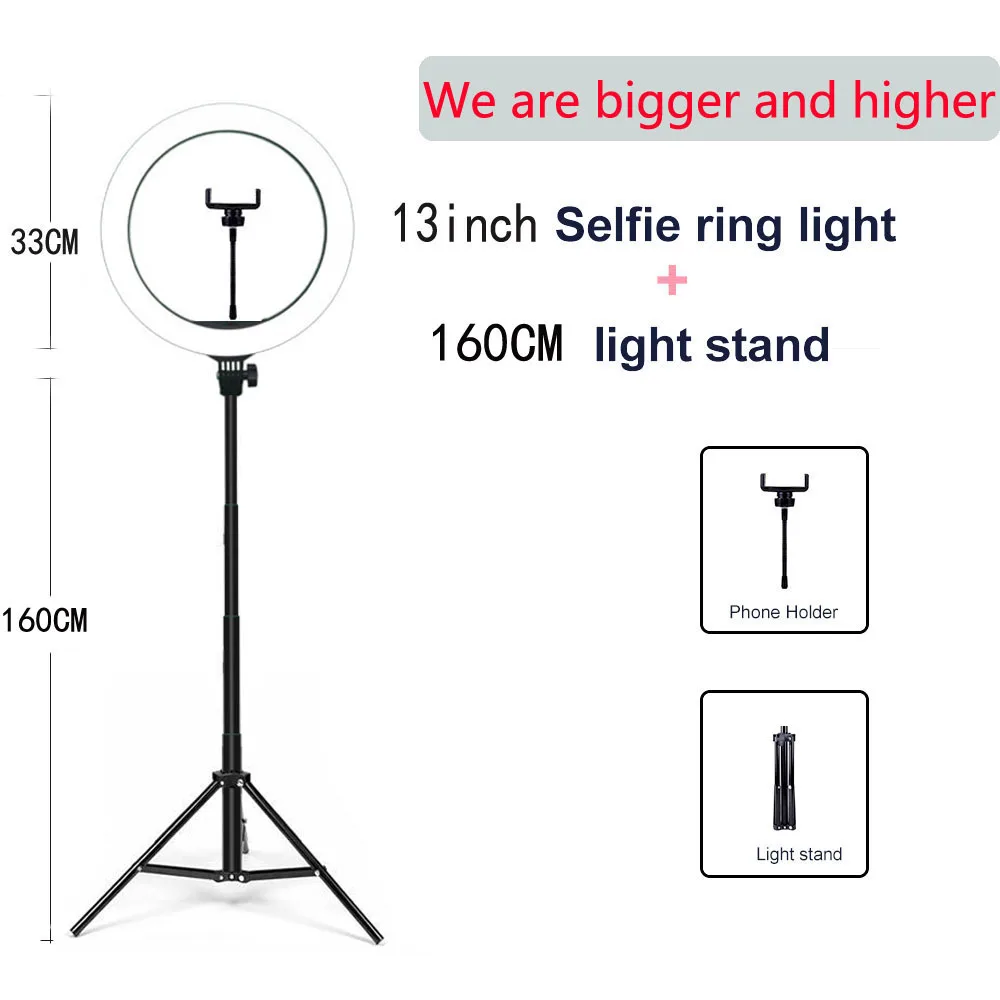 Приглушаемая Светодиодная лампа для видеосъемки, кольцесветильник ильник диаметром 33 см, USB-лампа, освещение для фотосъемки, со штативом 2 м для макияжа и Youtube