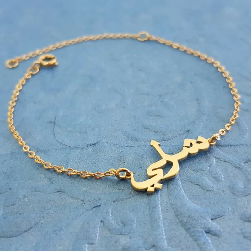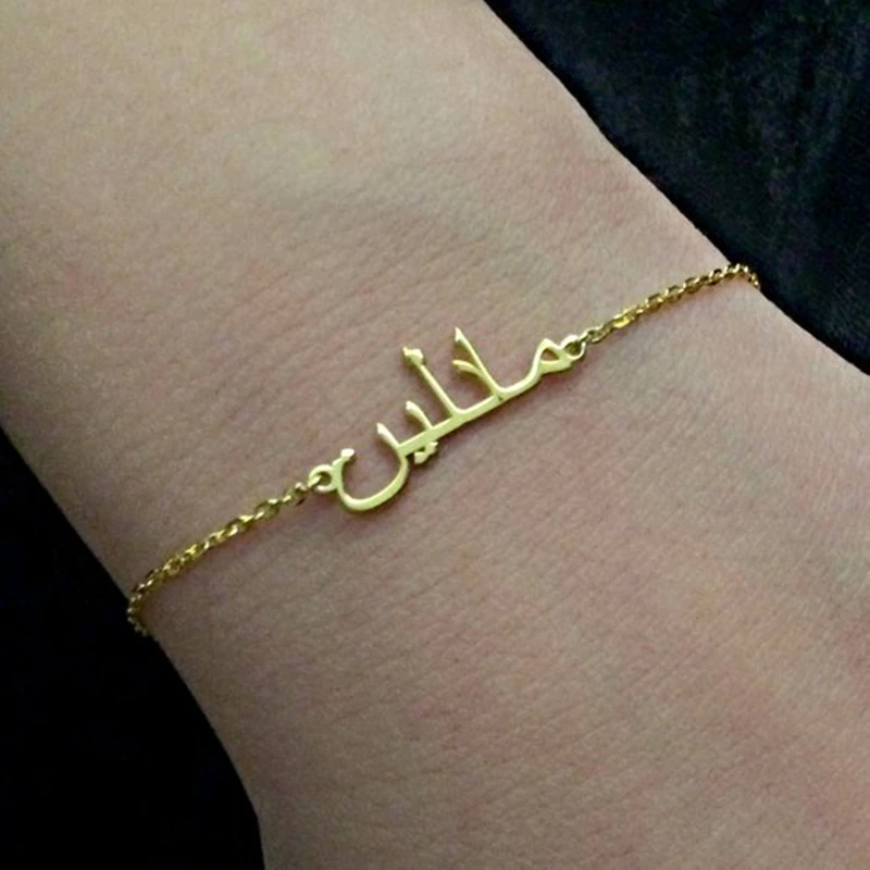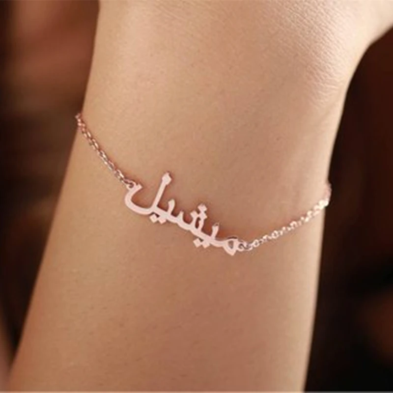 Розовое золото, имена Pulseira, персонализированные ювелирные изделия, исламское арабское имя, браслеты для женщин, подружки невесты, подарок, табличка, ссылка на руку