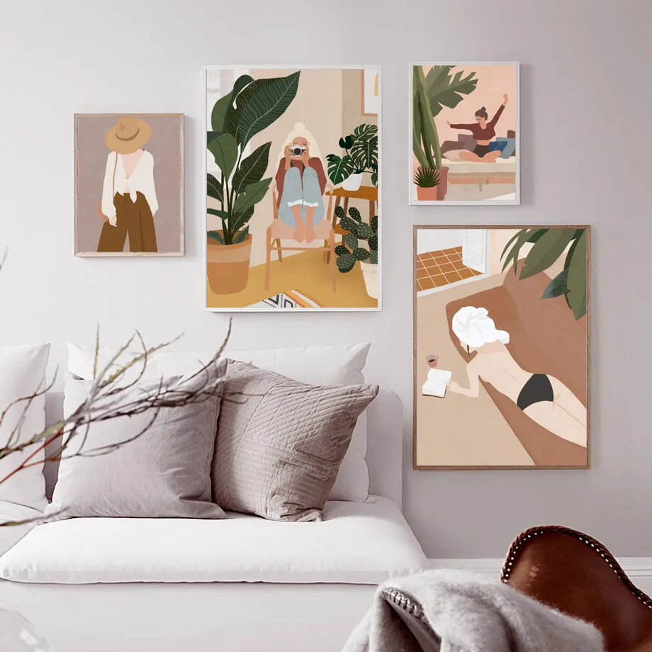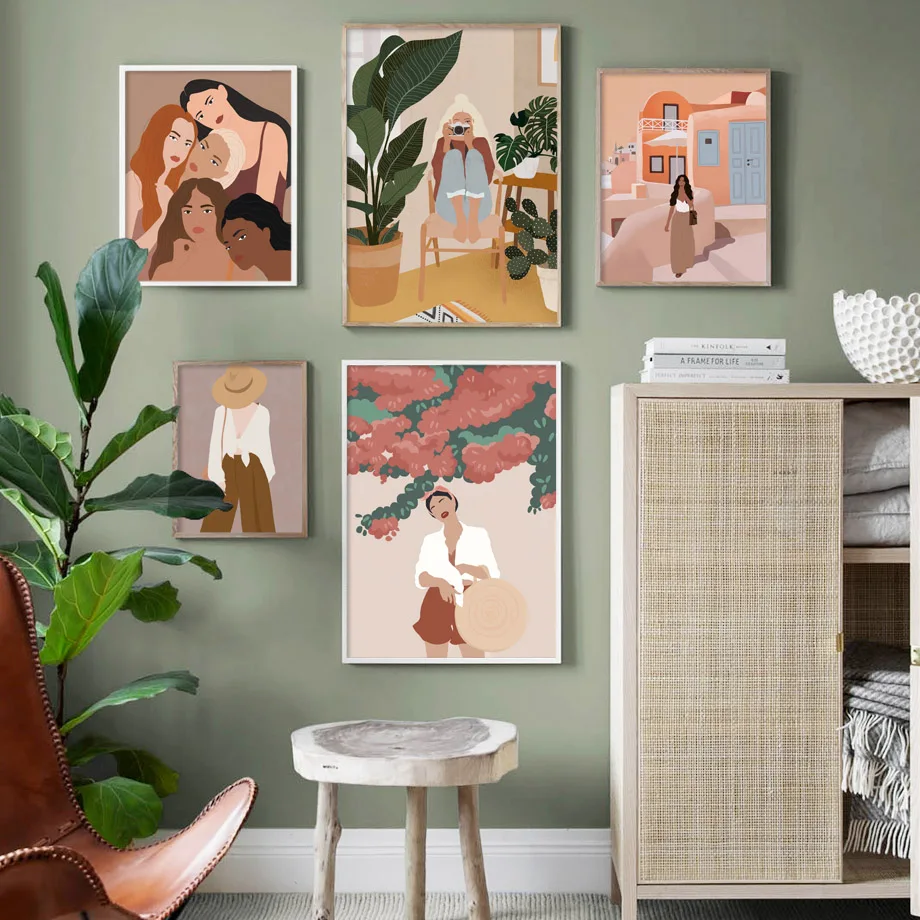 Настенные картины в скандинавском стиле с изображением девушек и же...