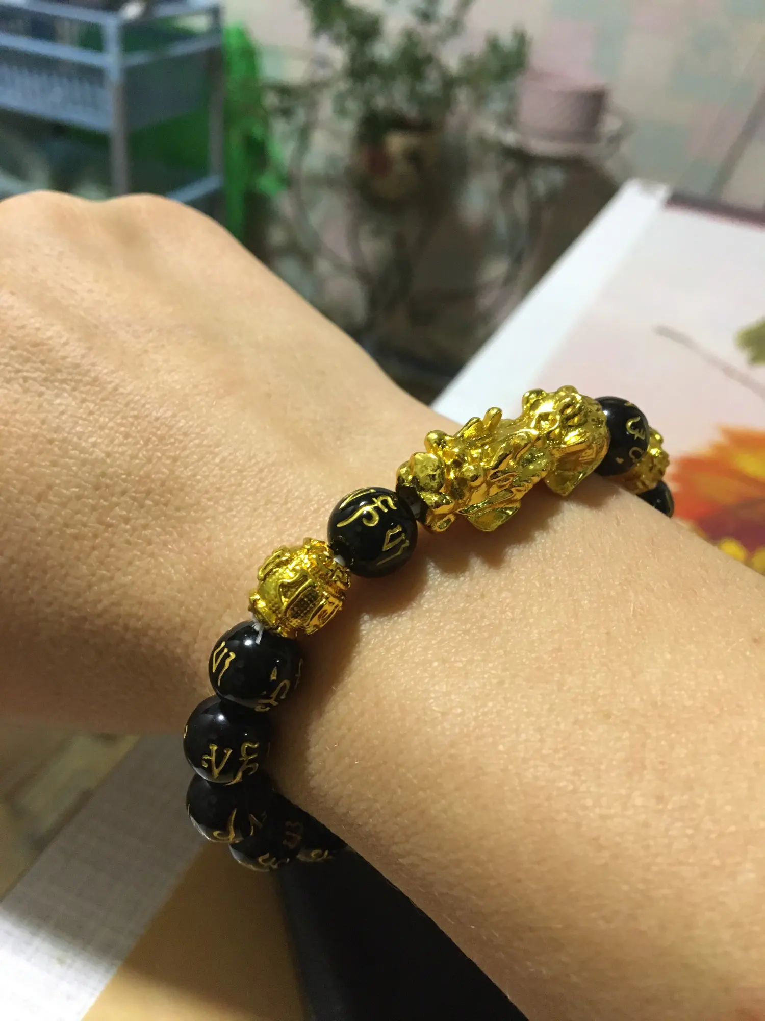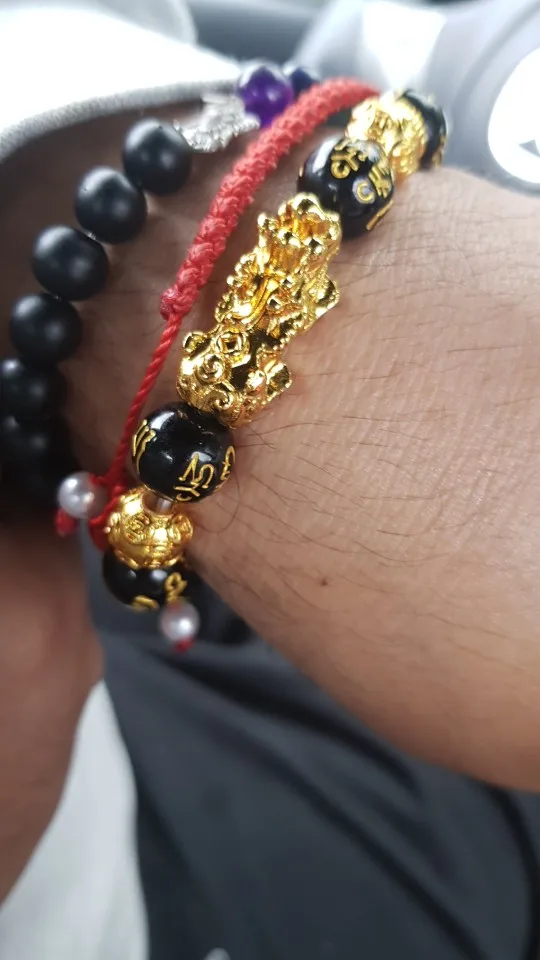 Обсидиановые бусины браслеты богатство и Удачи Китайский Фэншуй пик...