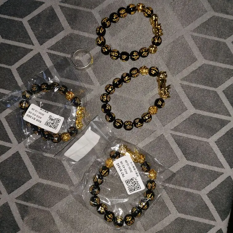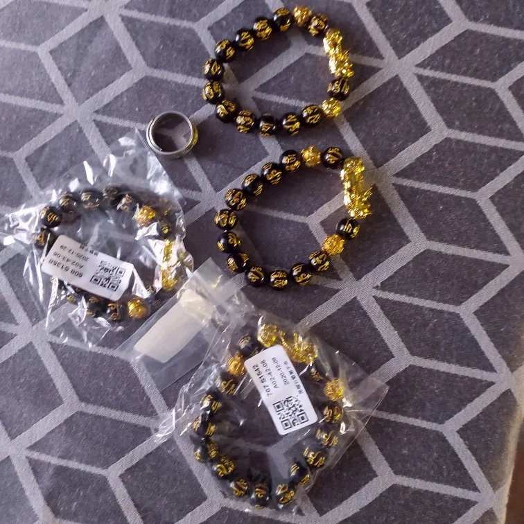 Черный браслет Pixiu, набор колец, буддийский браслет фэн-шуй из би...