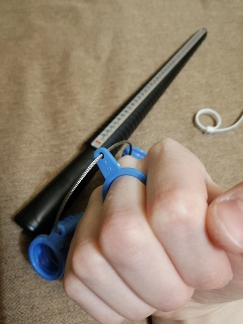 Ригель лёгкий, пластиковый, аккуратный, хорошая чёткая маркировка на ламинированной металлической полоске. Набор измерительных колец на прочном тросике с надёжной завинчивающейся застёжкой - с рельефной маркировкой (цветом не выделено, не очень удобно смотреть). На самом деле для меня минус один - непривычная размерная шкала. Думаю, привыкну со временем.