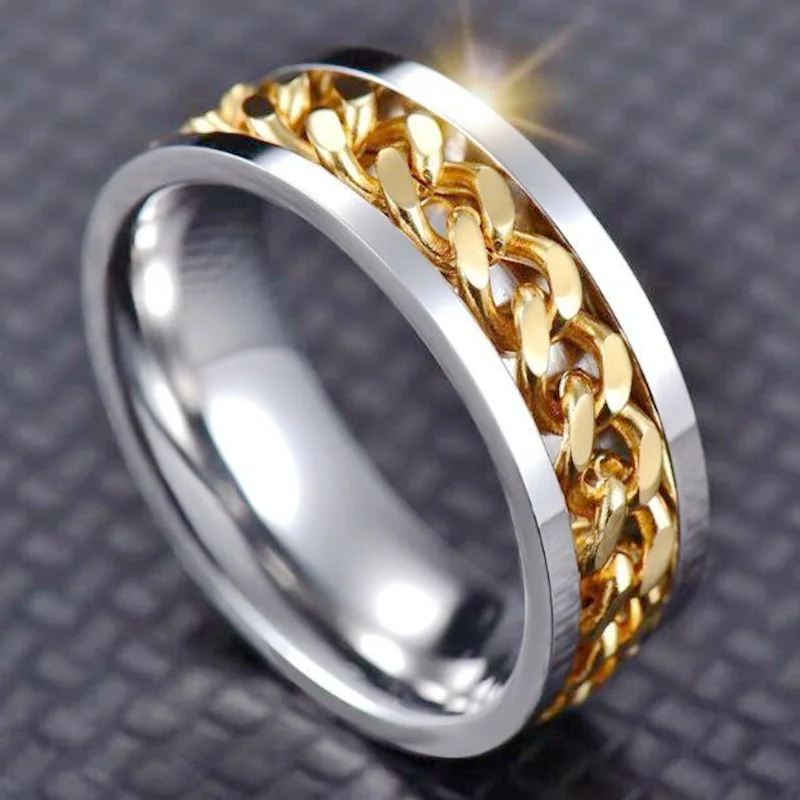 Мужские кольца с вращающейся цепочкой, цвет: черный, золотой, серебряный