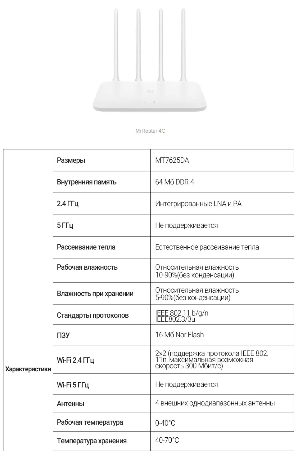 Xiaomi маршрутизатор Mi Router 4C роутер wi fi модем 4 антенны управление приложением router 2,4G 300 Мбитс для дома MOLNIA