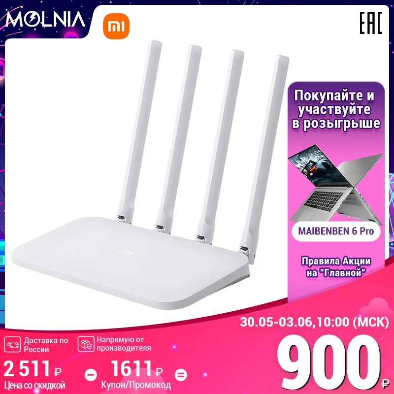Очень быстрая доставка, курьером, предварительно позвонил. Роутер стандартный, впрочем как и большенство. Подключился за 10 минут и еще контролировать можно через приложение mi WiFi. Брал со скидкой 870 руб.