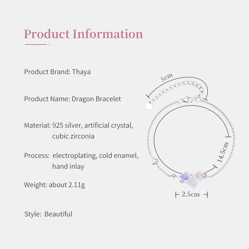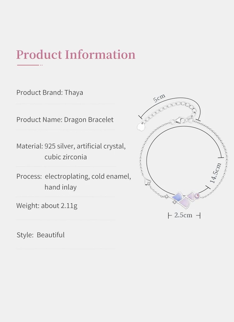 Бренд товара: ThayaНазвание продукта: браслет с дракономМатериал: серебро 925 пробы, искусственный хрусталь, фианитПроцесс: Гальваническое покрытие, холодная эмаль, Ручная инкрустацияВес: около 2,11 гСтиль: красивый