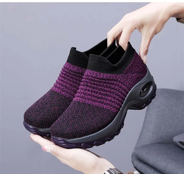 Кроссовки-носки женские на платформе, удобные сетчатые, мягкая рези...