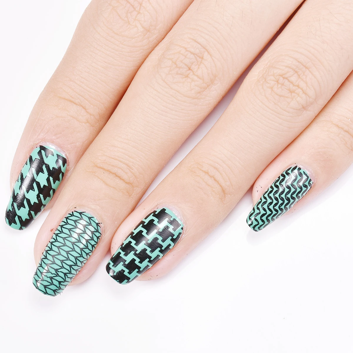 Трафарет для дизайна ногтей Beautybigbang, зимняя клетчатая геометр...