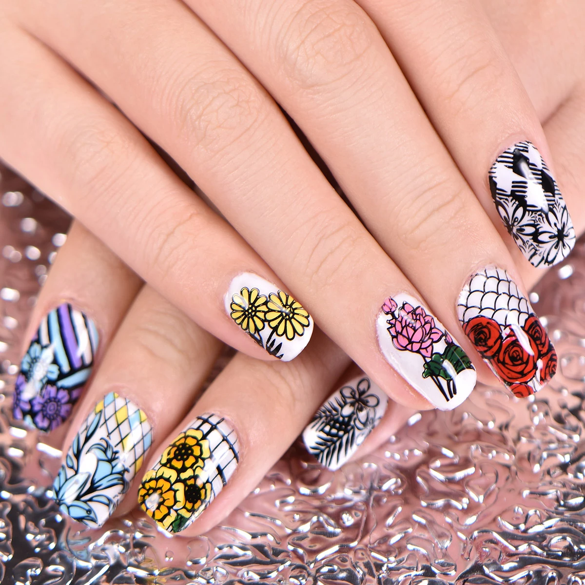 Трафареты BeautyBigBang для стемпинга ногтей, оболочка, цветок, арбуз