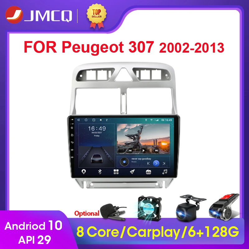 Мультимедийная магнитола JMCQ для Peugeot, стерео-система на Android 10, 2 Гб ОЗУ, 32 Гб ПЗУ, с 4 Гб ПЗУ, Wi-Fi, видеоплеером, GPS, для Peugeot 307, 2002-2013, типоразмер 2 din