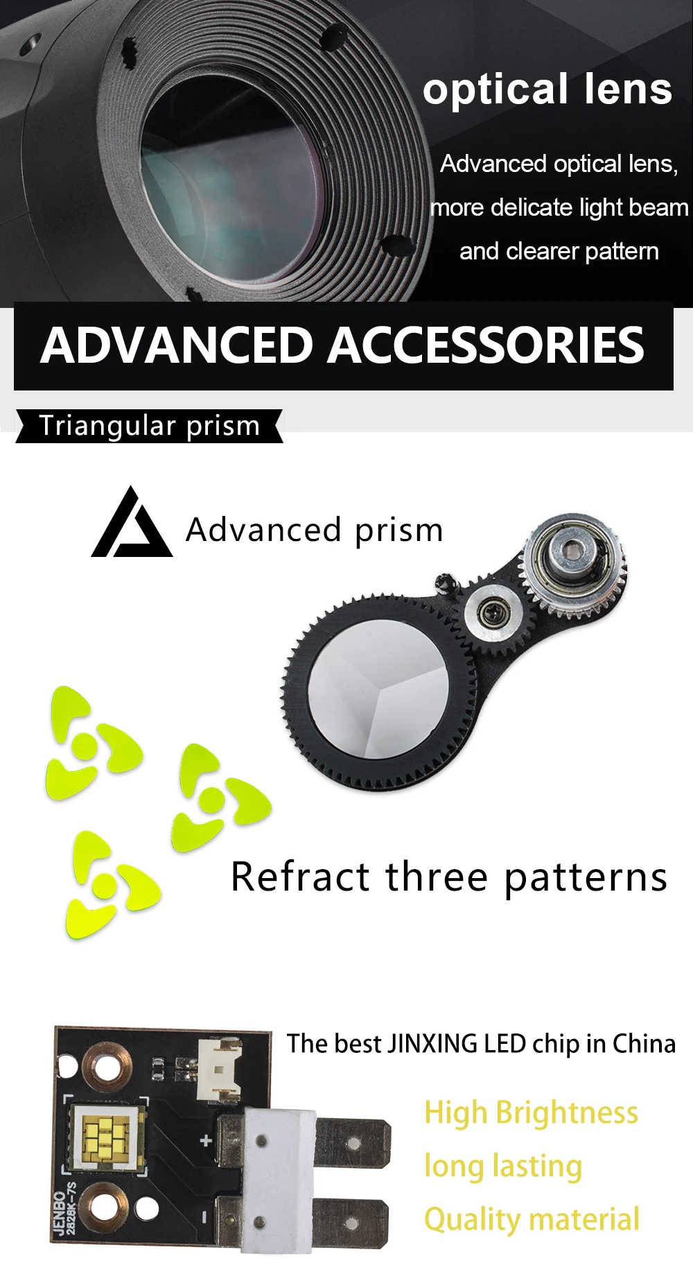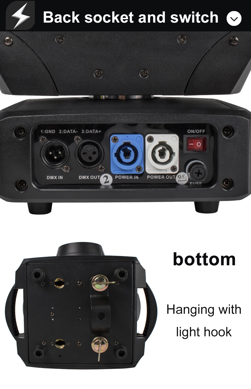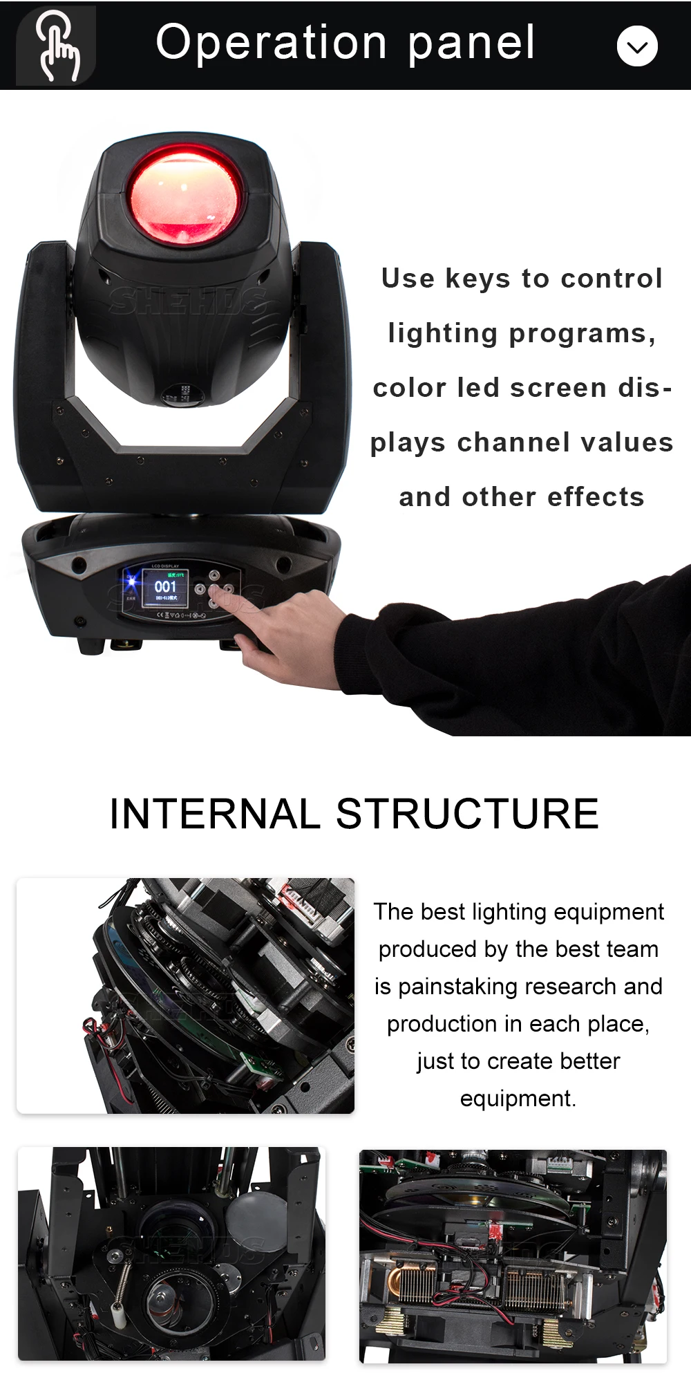 * Напряжение: AC90V ~ 275V, 50 ~ 60Hz* Режим управления: 18 каналов DMX512* Светильник источник света: 1 шт. 200 Вт белые светодиоды* Фокус: линейный фокус* Луч: эффект изменения угла многоступенчатого луча* Регулировка яркости: 0-100% линейная регулировка* Угол луча: угол параллельного луча 0 °-2,3 °* Угол распыления светильник 8 °* Стробоскоп: 1-25 Гц с импульсным эффектом* Цветовая температура: 7500k* Срок службы светодиодов: в среднем 5000 часов* Цветной диск: 9 цветов цвет s + белый светильник* Диск с узором: 1 вращающийся диск с узором + 1 металлический диск с узором* Шаблон диска Призма: 1 Призма и 4 стороны* Световой поток: 20 м/186700lux 40 м/48175lux 60 м/20855lux* Диапазон проекции: 540 градусов в X направлении, 270 градусов в Y направлении, Автоматическая коррекция и позиционирование* Скорость сканирования: 3,0 секунд/540 градусов в направлении X, 2,0 секунд/250 градусов в направлении Y• Вес нетто: 14,5 кг* Вес Grose: 23 кг