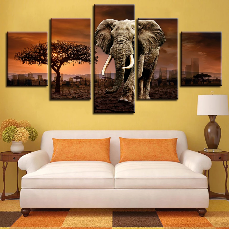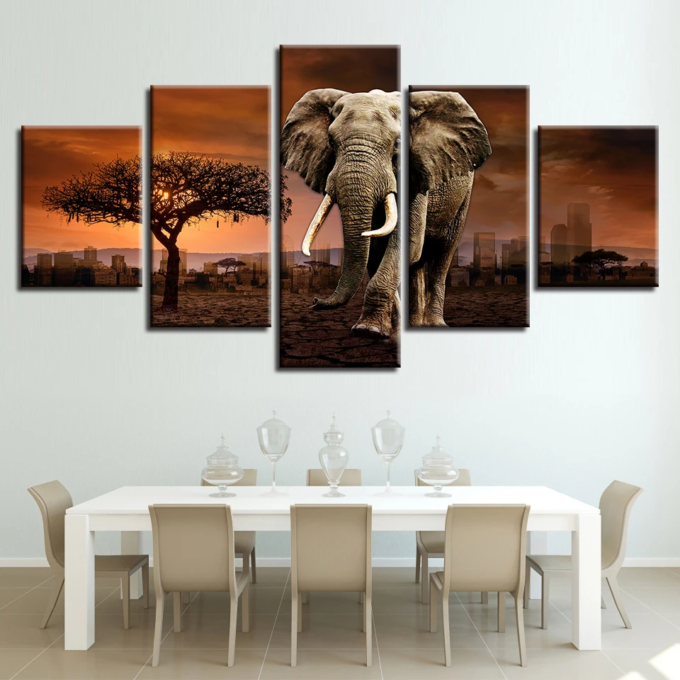 5 шт., слон, закат, дерево, пейзаж, 5 d, алмазная картина, полная круглая Алмазная вышивка, много панелей, Декорации для дома,