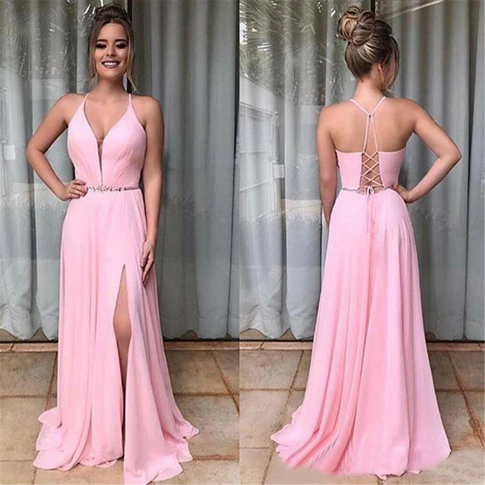Красивое платье на тонких бретельках, выпускное, розовое, с выгнуто...