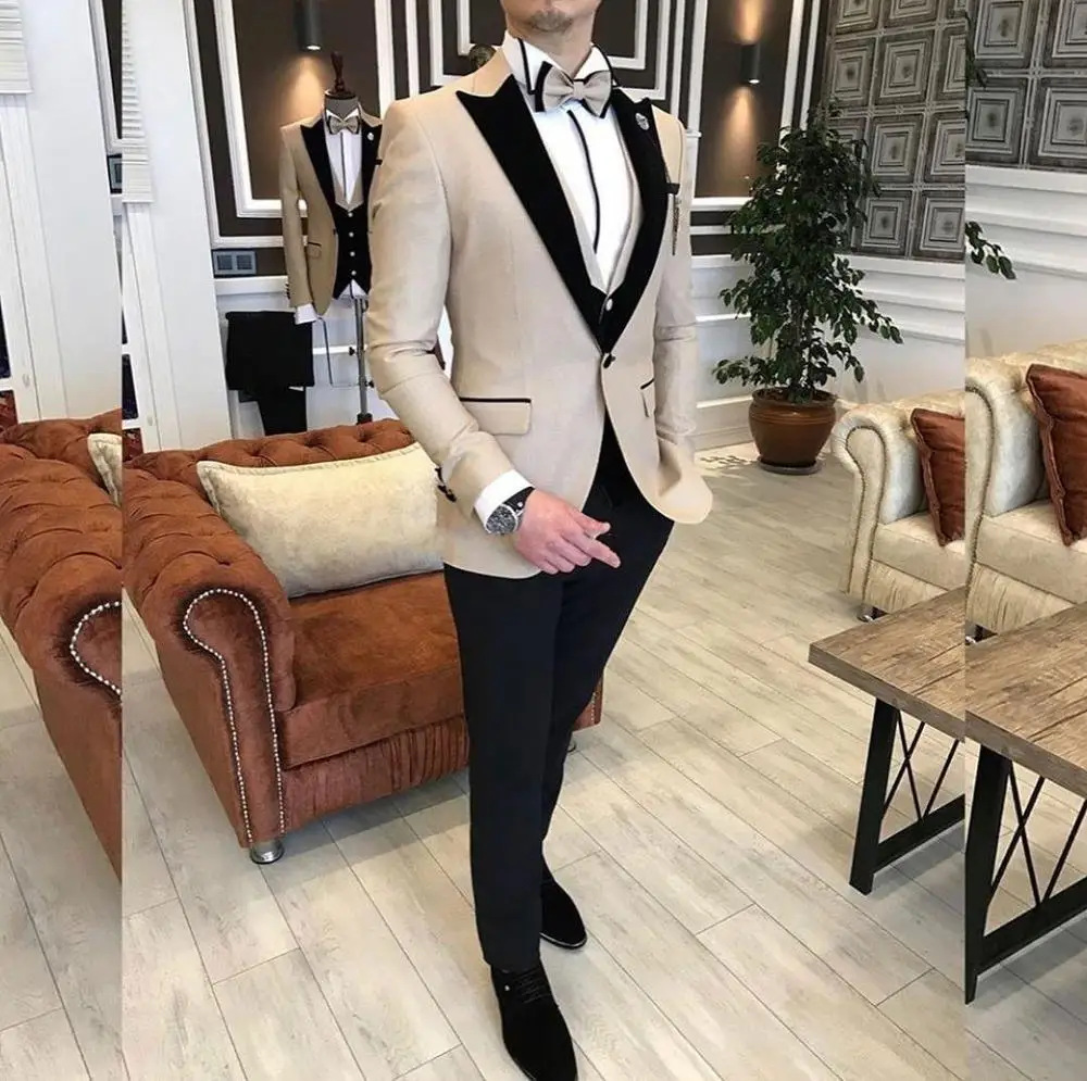 2020 на заказ 3 предмета бежевый смокинг Блейзер повседневный деловой нежный мужской Жених Костюмы для выпускного бала для мужчин Свадебный лучший мужской смокинг