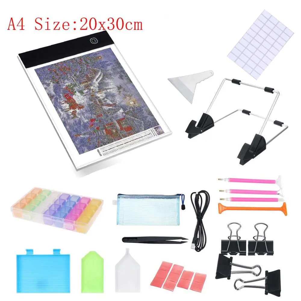 Светодиодный светильник A4 для алмазной живописи, светильник с питанием от USB, набор для доски, клей для лотка, регулируемая яркость со съемными зажимами для подставки