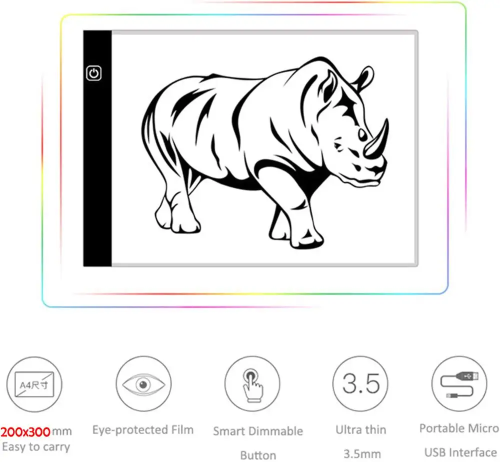 Планшет для рисования А4, квадратный круглый, со светодиодсветильни...