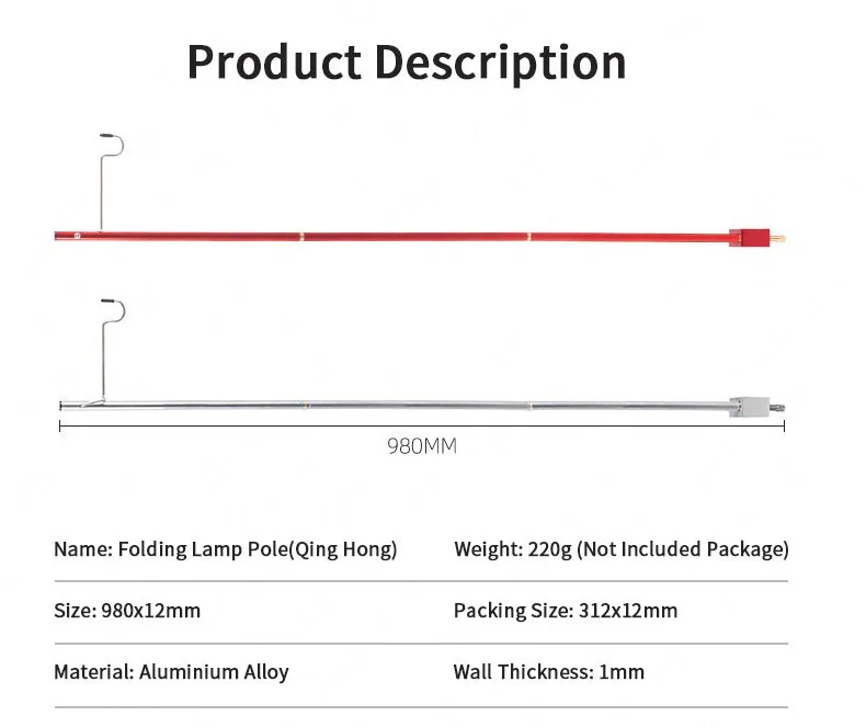 Бренд: Naturehike Название: легкий складной светильник (Qing Hong) Материал: алюминиевый сплав Размер: 980x12 мм Размер упаковки: x 12 мм Вес: 220 г (не включенная упаковка) Толщина стенки: 1 мм Комплектация: сумка для хранения/прокладка/кронштейн/складной световой столб Цвет: красный/серебристый/черный (заземляющий гвоздь столба лампы)
