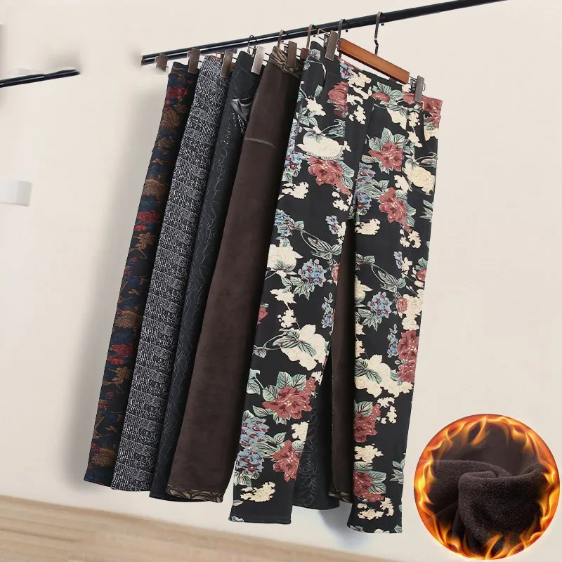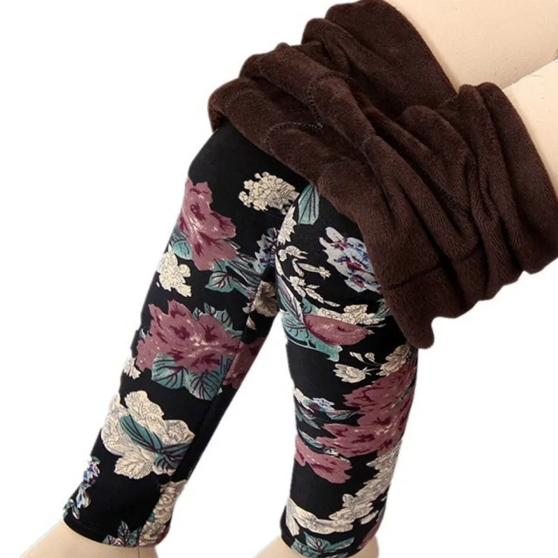 Женские бархатные леггинсы с цветочным принтом, осенне-зимние теплые брюки с цветочным принтом, для мам, до 90 кг, V66