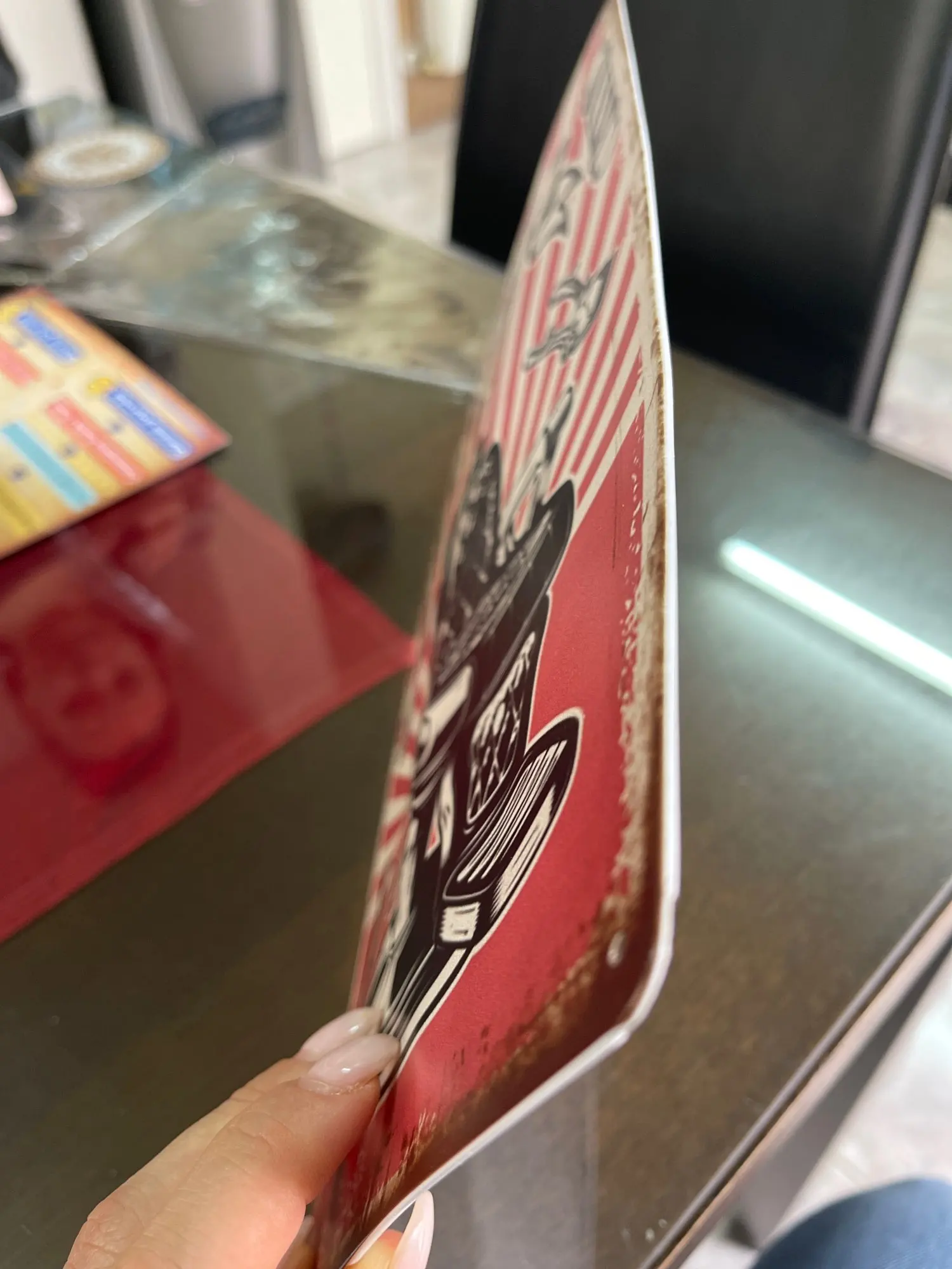 Характеристики продукта: (1) Продукт изготовлен с технологией УФ-печати высокой четкости, с четкими узорами, яркими цветами, прочный и не выцветает. (2) изделие имеет четыре отверстия для подвешивания, и его также можно установить. (3) используется для украшения в гостиной, гараже, кафе-Магазине, баре, ресторане и т. д., ретро и красиво. (4) идеальный подарок-поистине уникальный подарок, гарантированно принесет улыбку