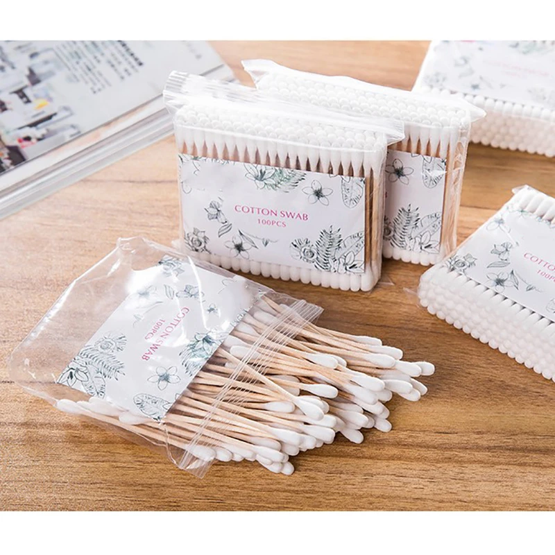 500100 шт. Двойной головной ватный тампон женский Макияж ватные палочки наконечник для медицинских деревянных палочек Чистка ушей носа инструменты для ухода за здоровьем