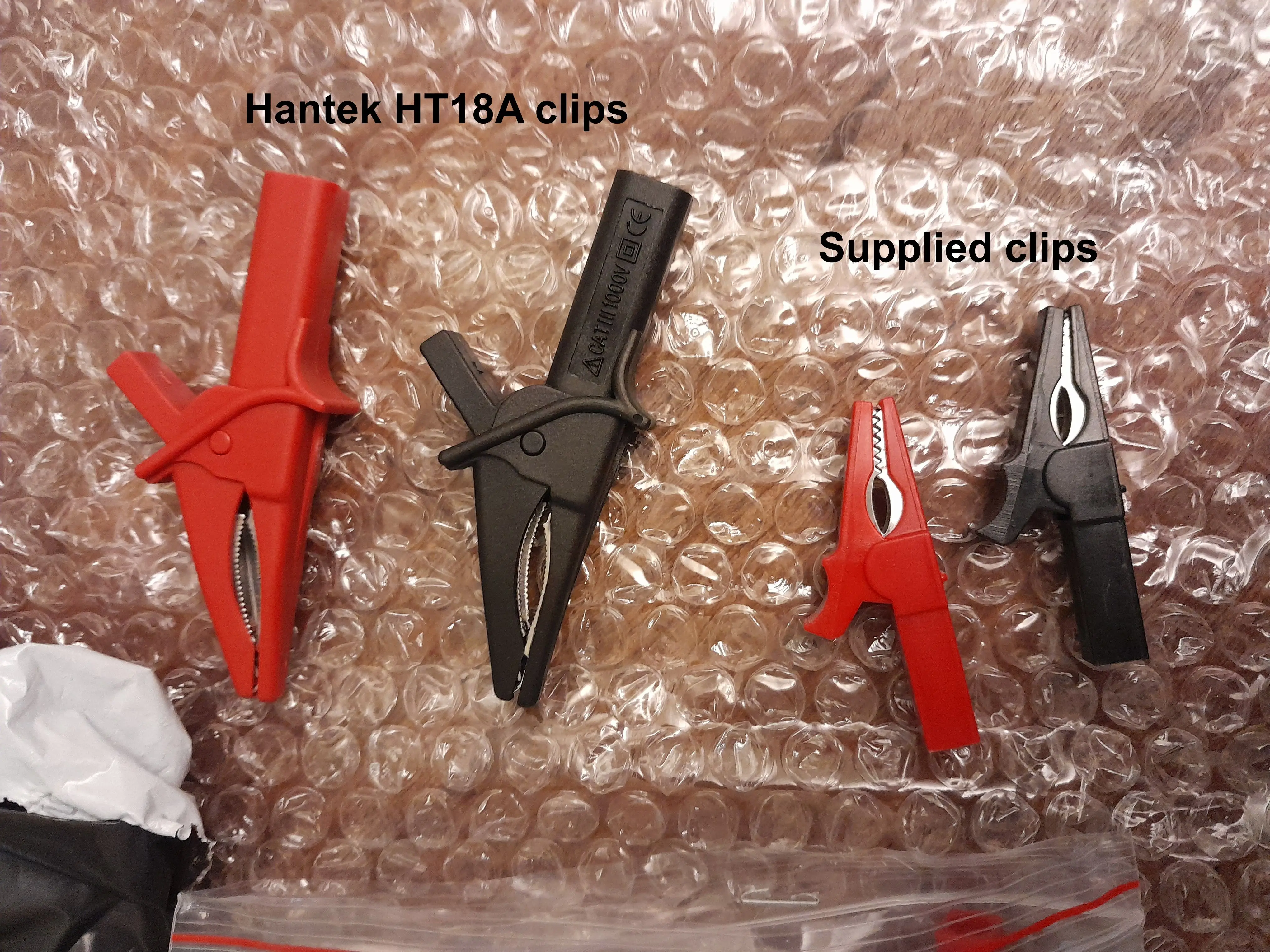 Получил совершенно другой продукт, чем описано и показано на фотографии. Клипсы, которые я получил, никогда не были Hantek HT18A, но это дешевый товар очень низкого качества. Не подходит на 4 мм безопасности Банановый штекер и там с непригодным вместе с HT30A Авто Тесты кабель, как описано.