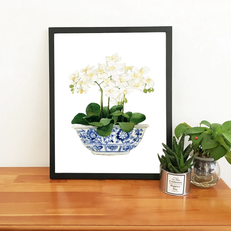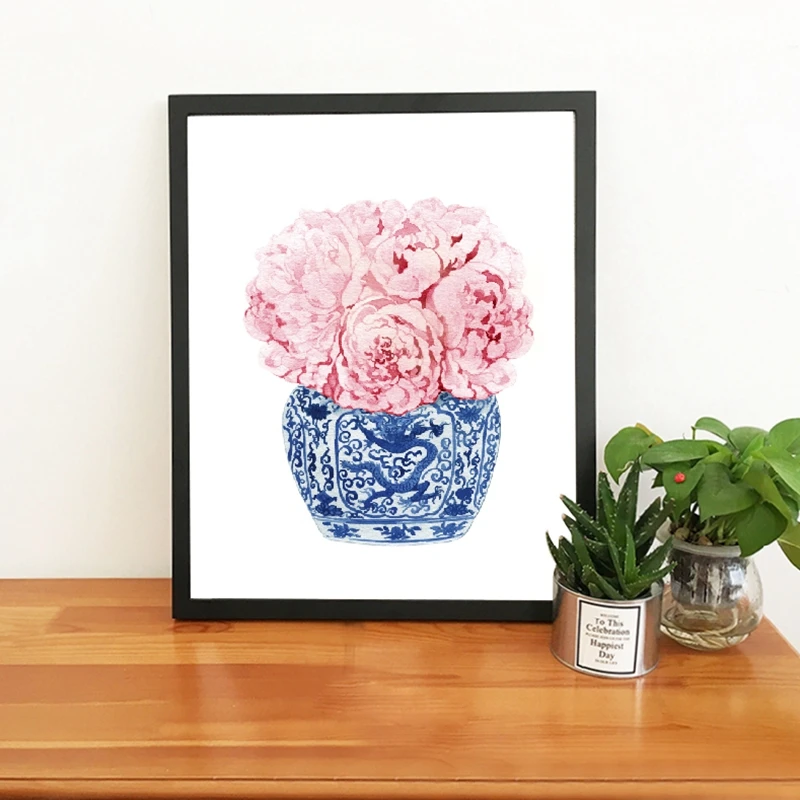 Сине-белая китайская ваза, цветок, художественные принты, Ивовый стиль, китайский фарфор, холст, постер, живопись, домашний Настенный декор