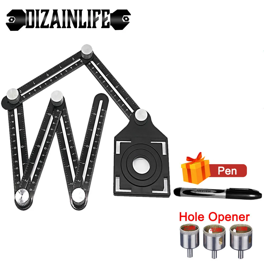 Угловая линейка из алюминиевого сплава, складывающаяся в 46 раз, измерительная линейка, шаблон, инструмент, перфорированная форма, измеритель, локатор, направляющая для сверления, отверстие для плитки