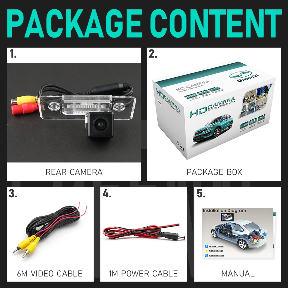 1 x камера траектории обзора Reart1 х 6 м видео кабель1 х 1 м кабель питания1 x Руководство пользователя