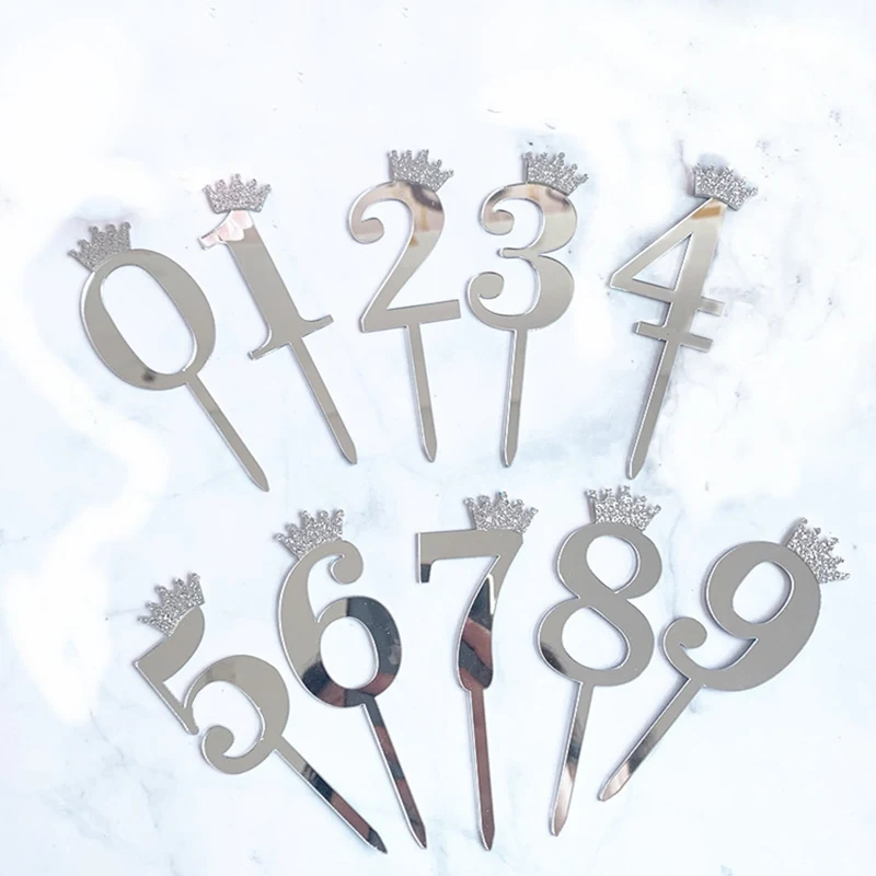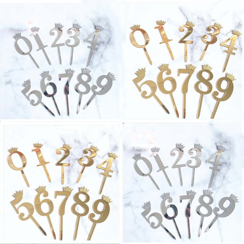 Цифра, топпер для торта, золотая, серебряная, Акриловая Корона, 0-9...