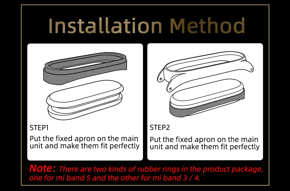 Браслет в родной коробке, есть уплотнители для установки miband3/4 и отдельно уплотнитель для miband5 - который и был успешно установлен. Все чисто ровно и красиво.