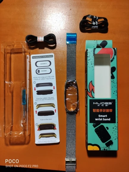 Браслет жене очень понравился, пришёл в коробочке с инструкцией (в картинках), отвёрточка для регулировки замка и бумажечками с обращением к покупателю. Сам приборчик встал плотно, без проблем. Однозначно рекомендуется к покупке.