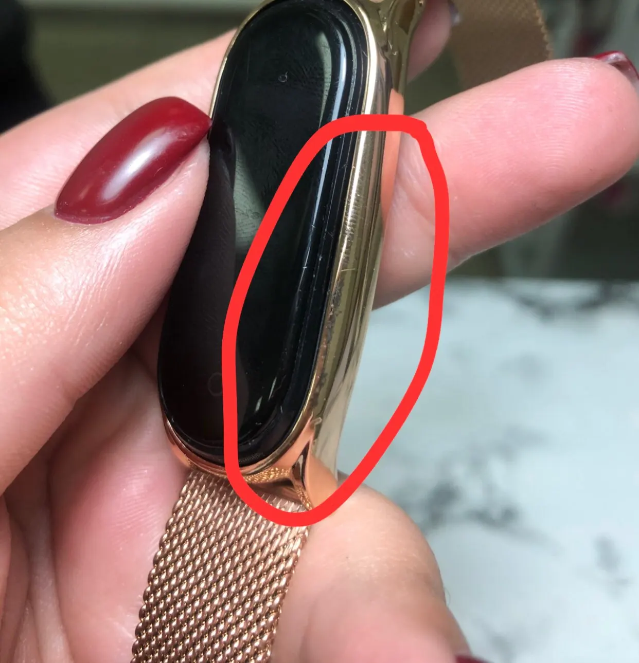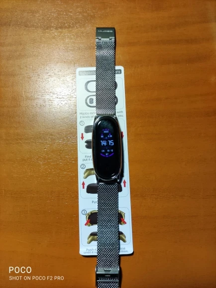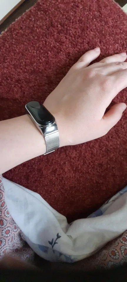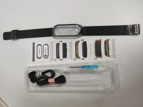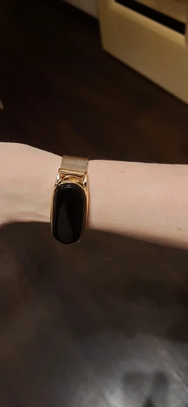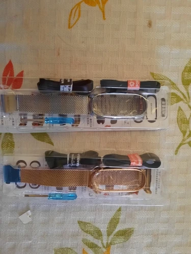 Товар хороший. Ремешок очень красивый. На женской руке смотрится хорошо, за руку не выперает по бокам. В комплекте лежат резиновые вставочки для Mi Band 3 4 5 и маленькая отвёртка. Товар рекомендую.