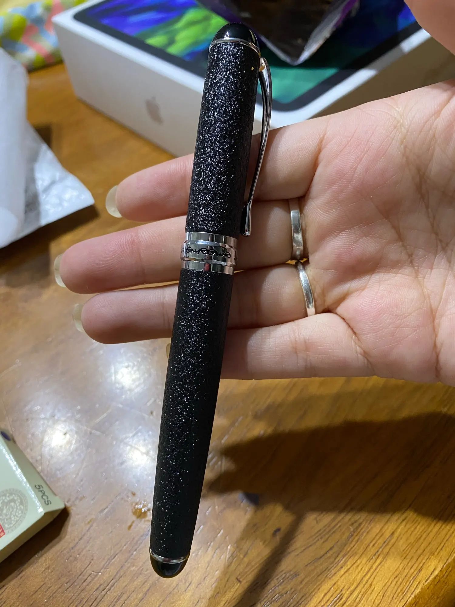 Хорошо сбалансирован. Быстрая доставка. Приятно писать. Я очень доволен ручкой.