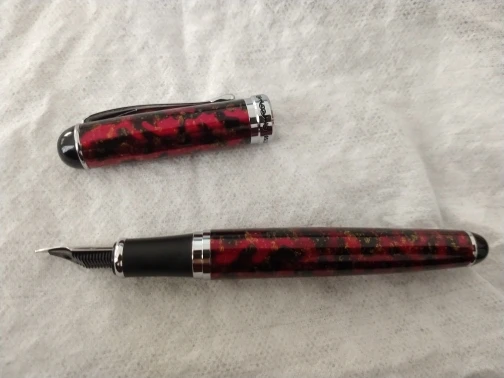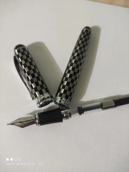 Эта модель jinhao удивила меня между ее отделкой и твердостью материалов, вес идеально подходит для руки, он пришел с конвертером, он ценится таким образом, что идеально подходит для элегантного предмета для ношения дня в день
