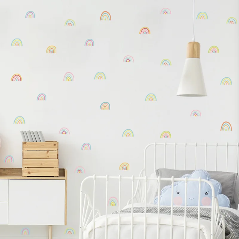 Мультяшные радужные наклейки на стену, украшение комнаты, красочные ПВХ детские наклейки на стену для детской комнаты, спальни