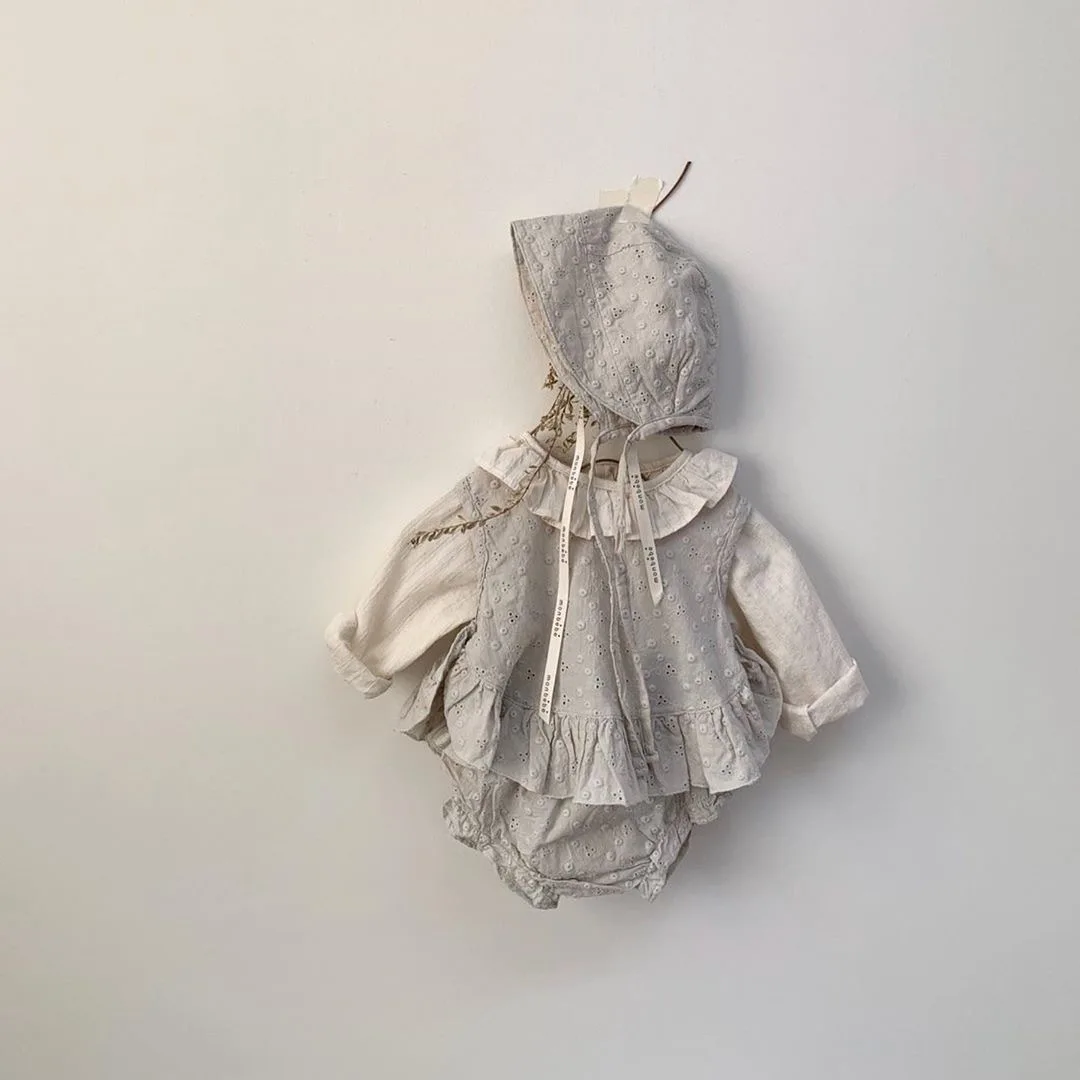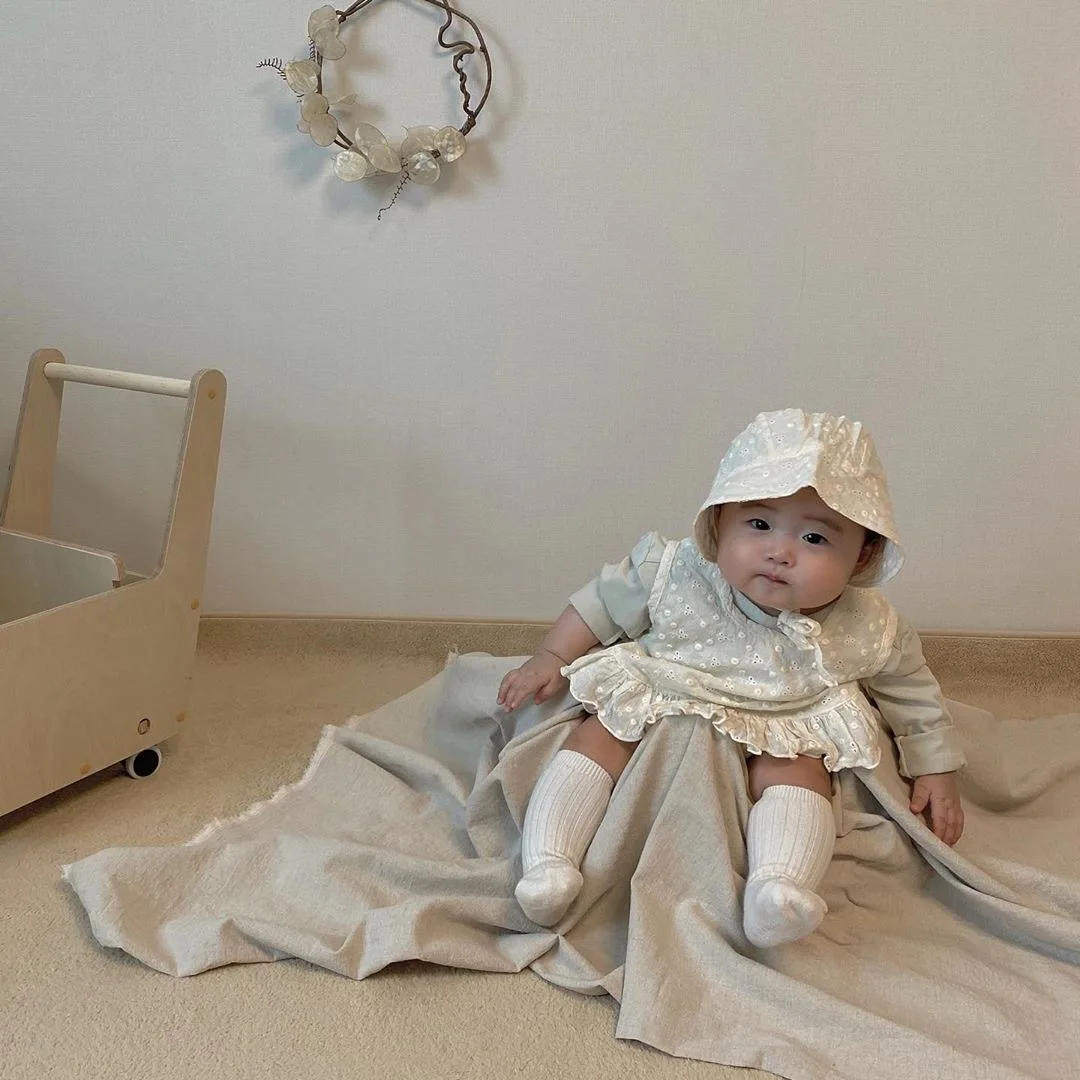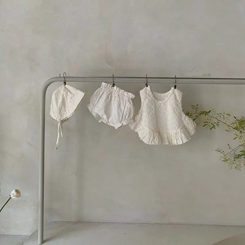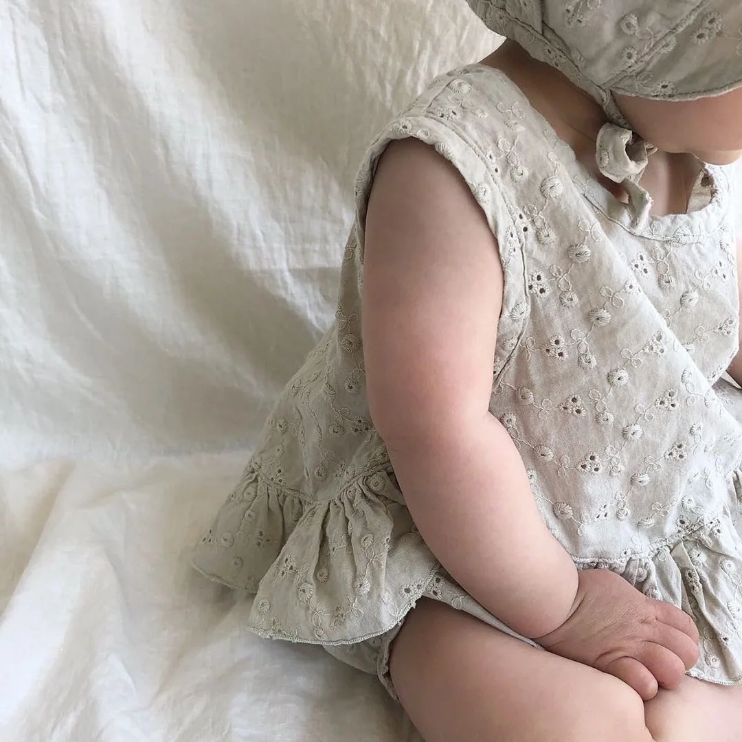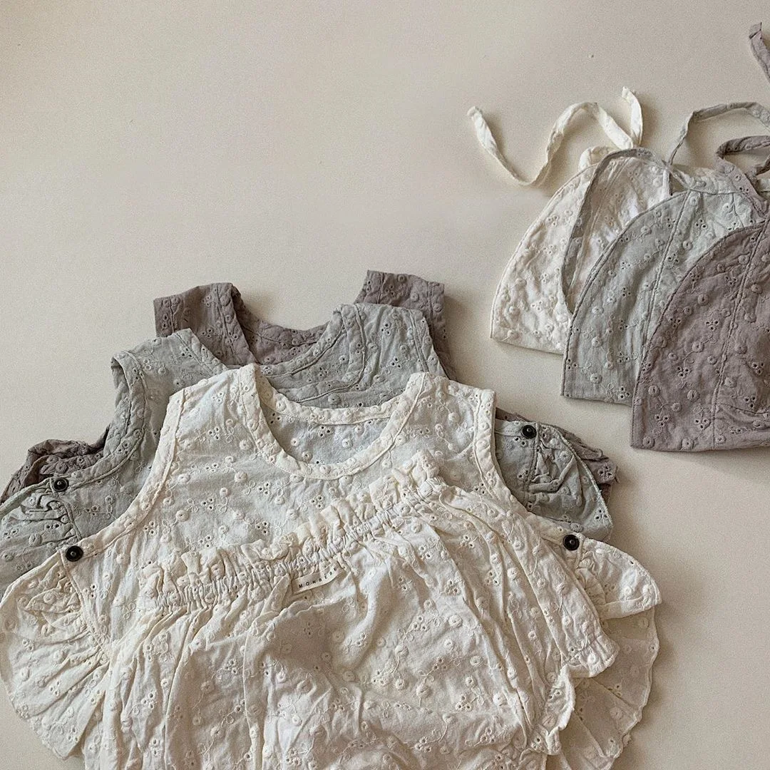 Комплект одежды для маленьких девочек, топ без рукавов с вышивкой в Корейском стиле, шапочка, комплект из 3 предметов, 0-24 м