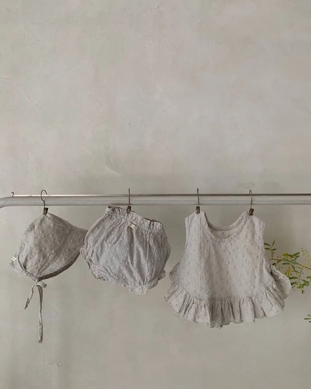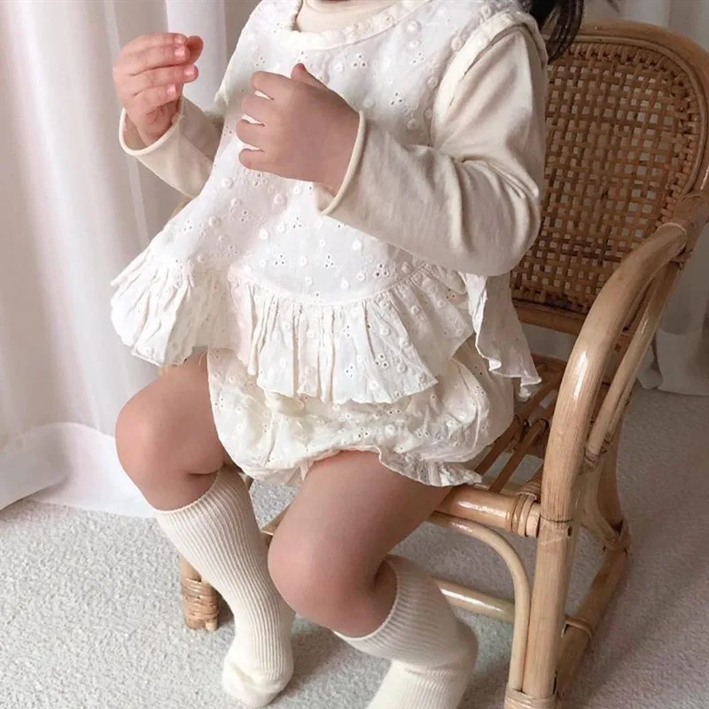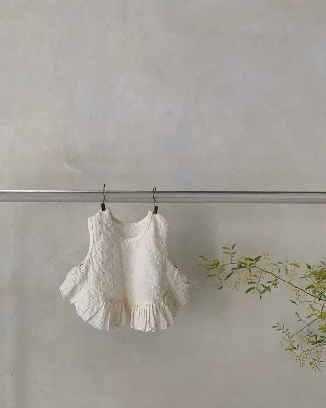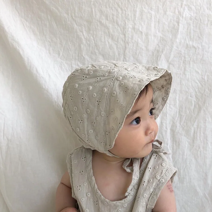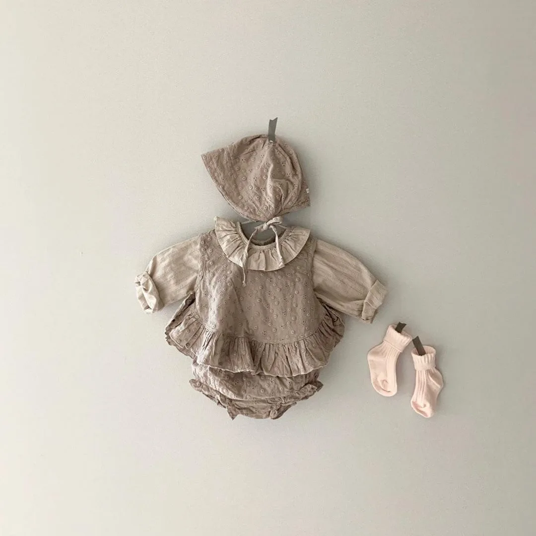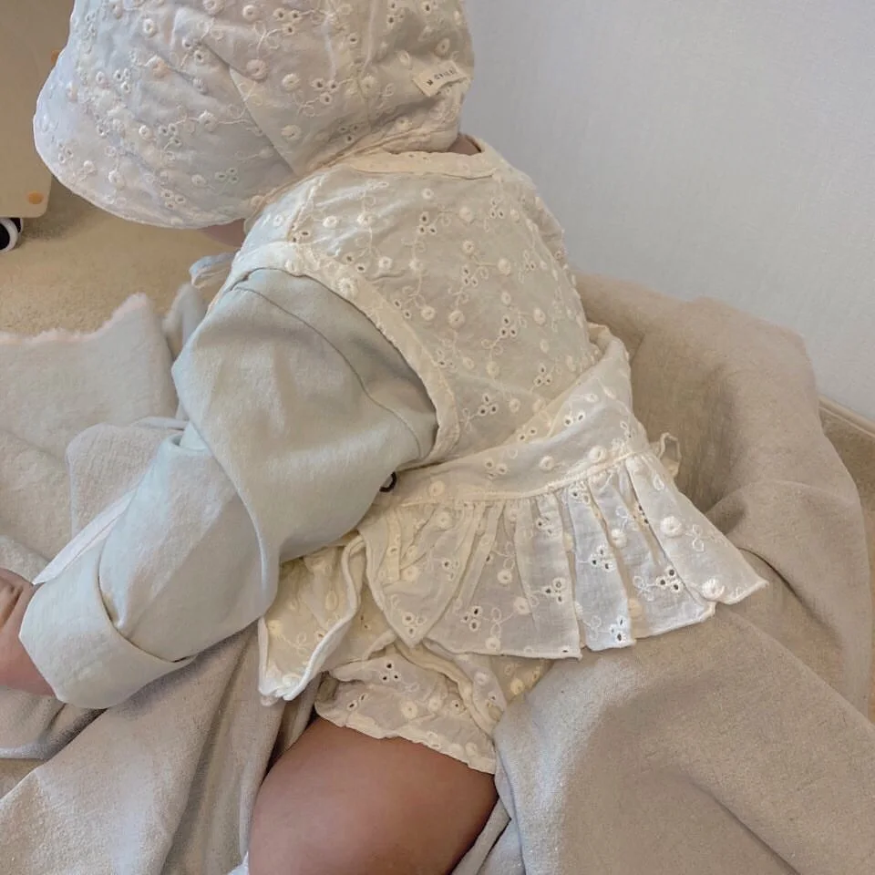 Комплект одежды для маленьких девочек, топ без рукавов с вышивкой в Корейском стиле, шапочка, комплект из 3 предметов, 0-24 м