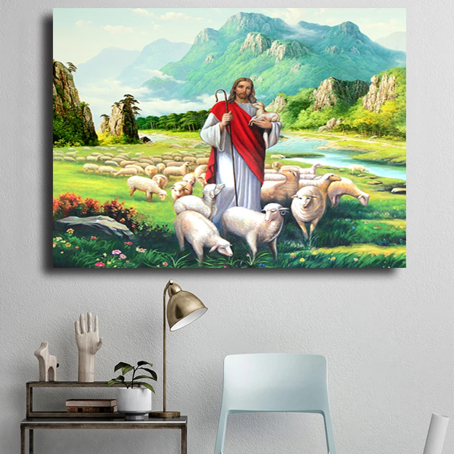 5D алмазная живопись Святой ягненок, Религиозное искусство Иисуса Христа, хороший пастушья, полная выкладка, квадратная круглая Алмазная вышивка, мозаика