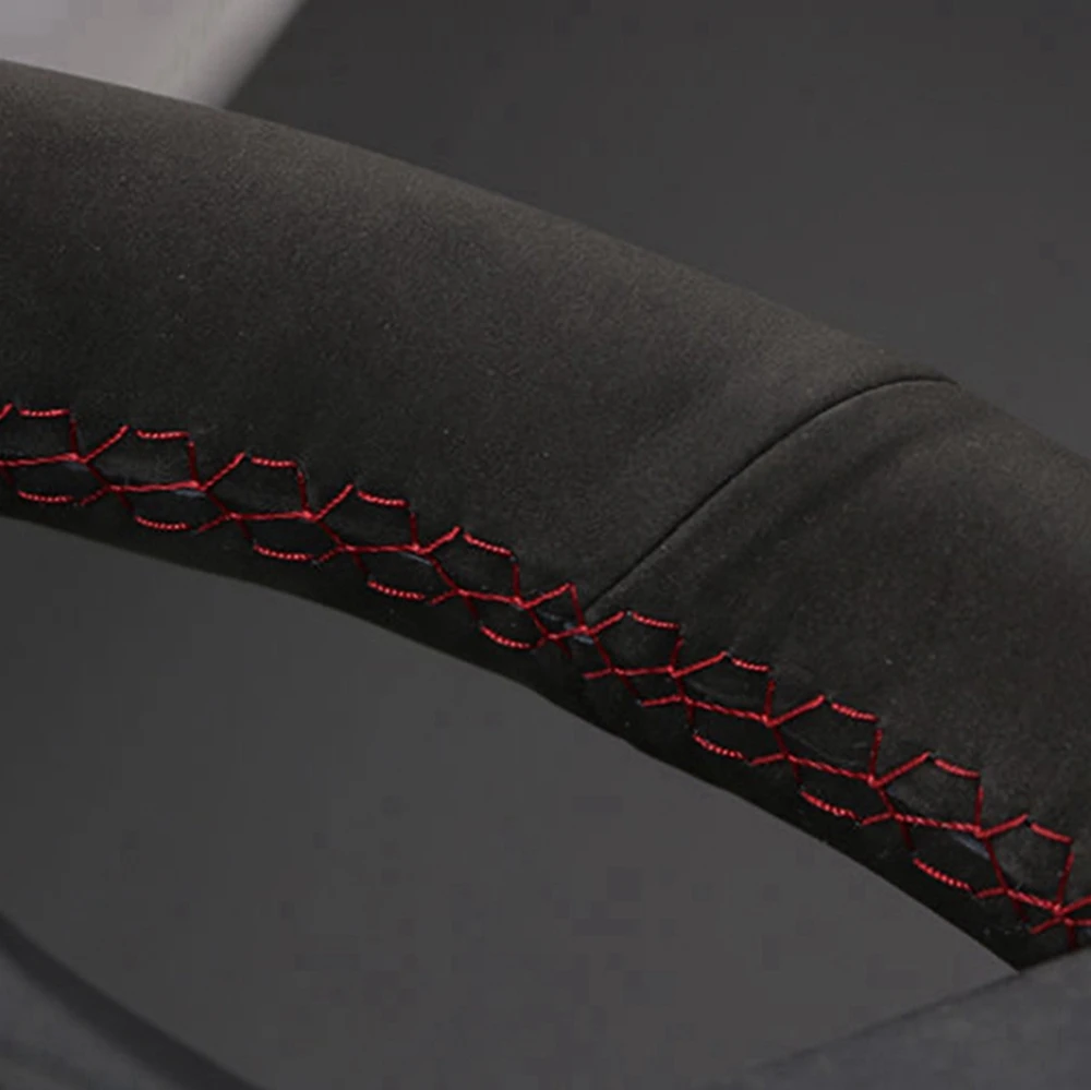 Сшитый вручную черный замшевый красный маркер Чехлы рулевого колеса...