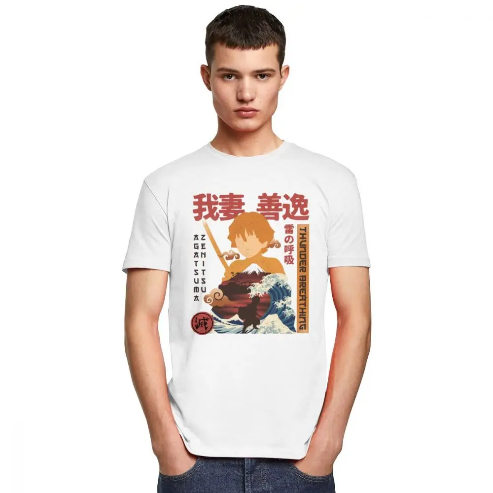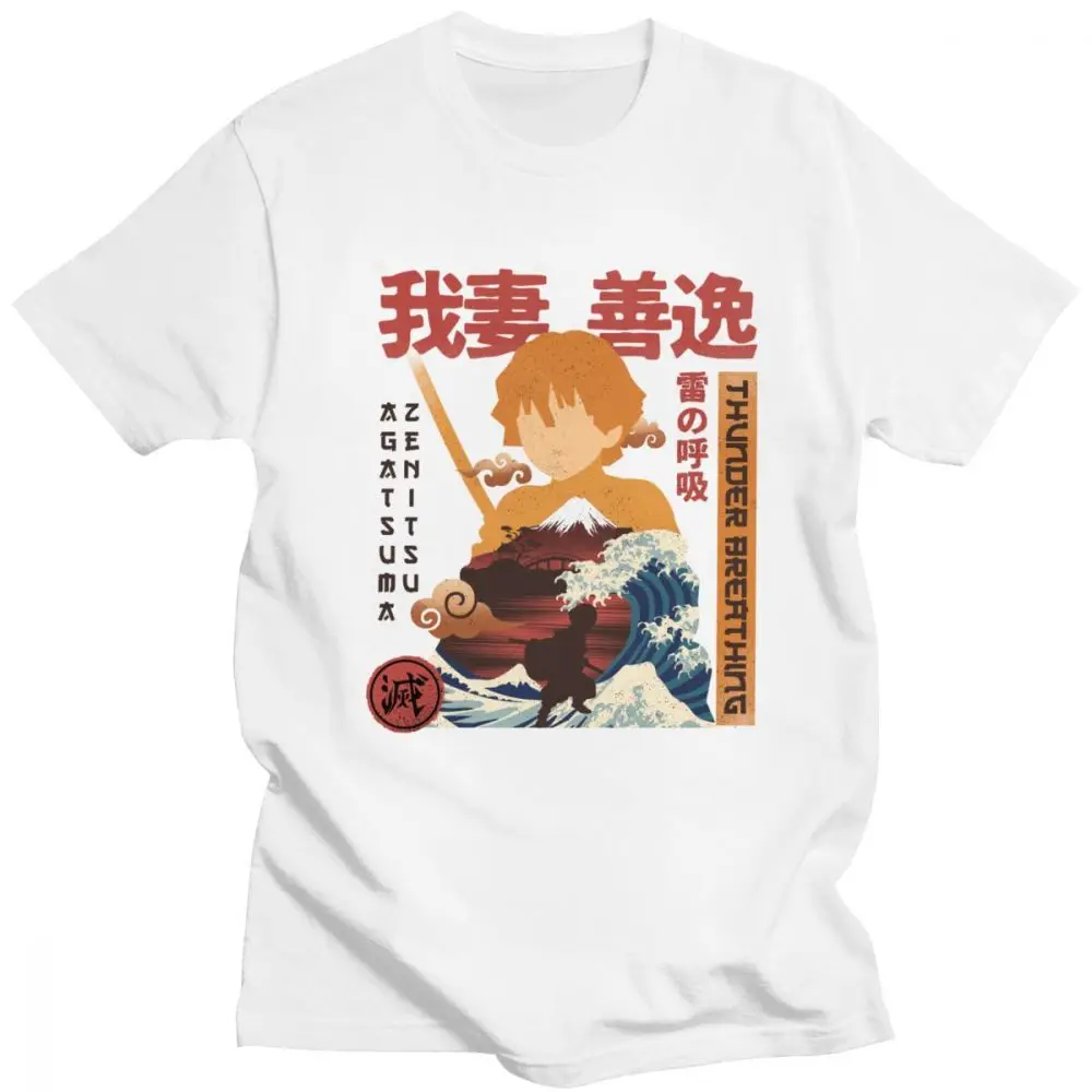 Модная мужская футболка Ukiyo E с коротким рукавом, с изображением рассекающего демона дыхания гром, футболка с принтом Slayer Kimetsu No Yaiba Kamado Nezuko