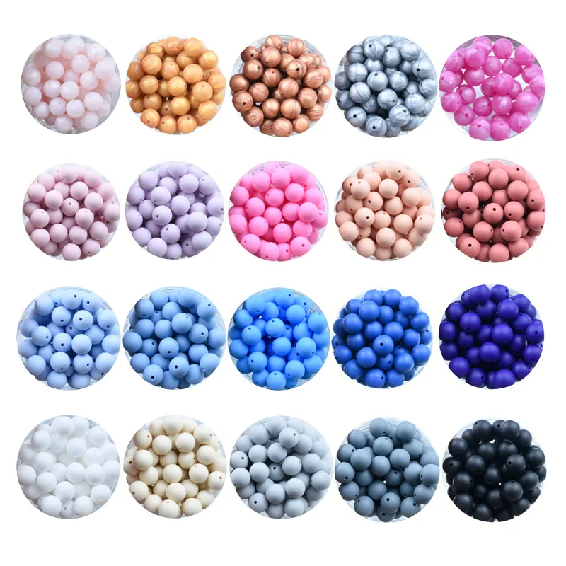 100 шт., силиконовые бусины для прорезывания зубов, 15 мм