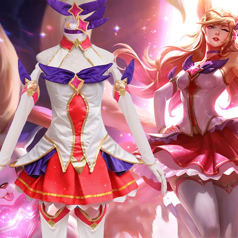 Костюм для косплея аниме Lol Star Guardian Ahri, комплект из платья волшебной девочки, пятиконечной лисы, полный комплект с топом и юбкой