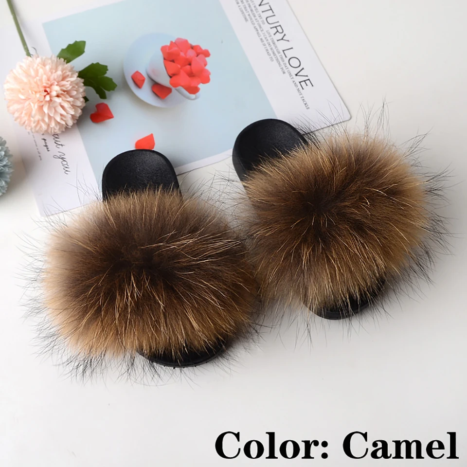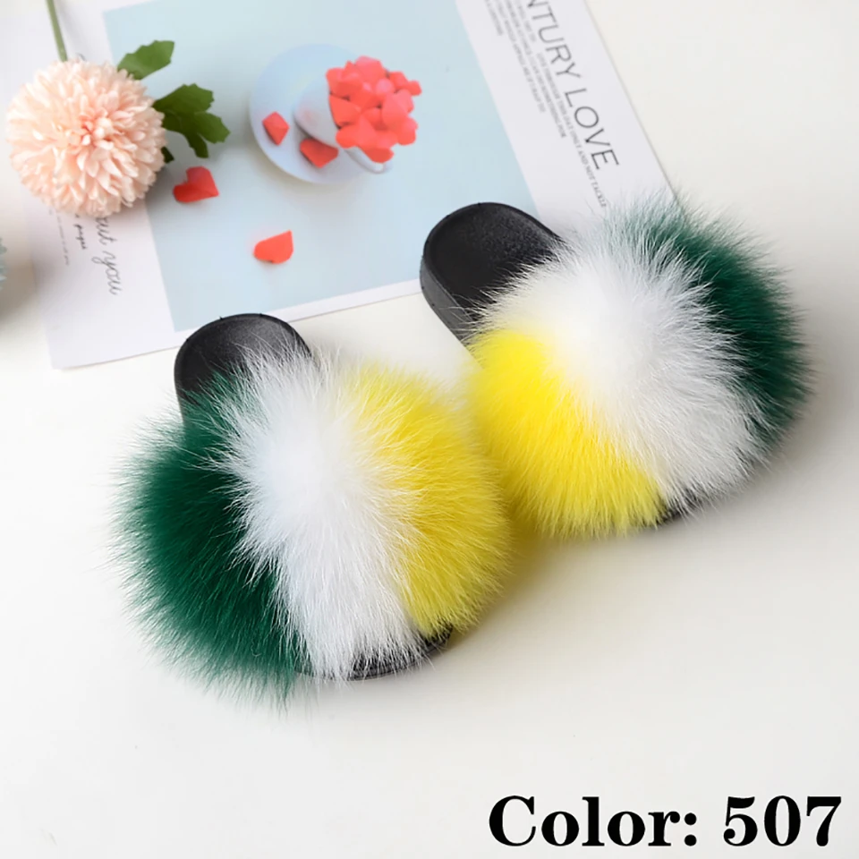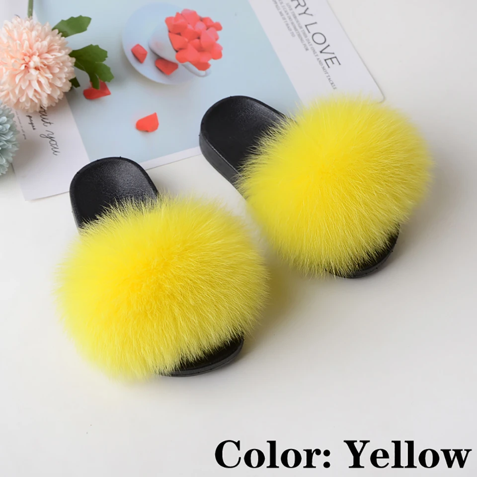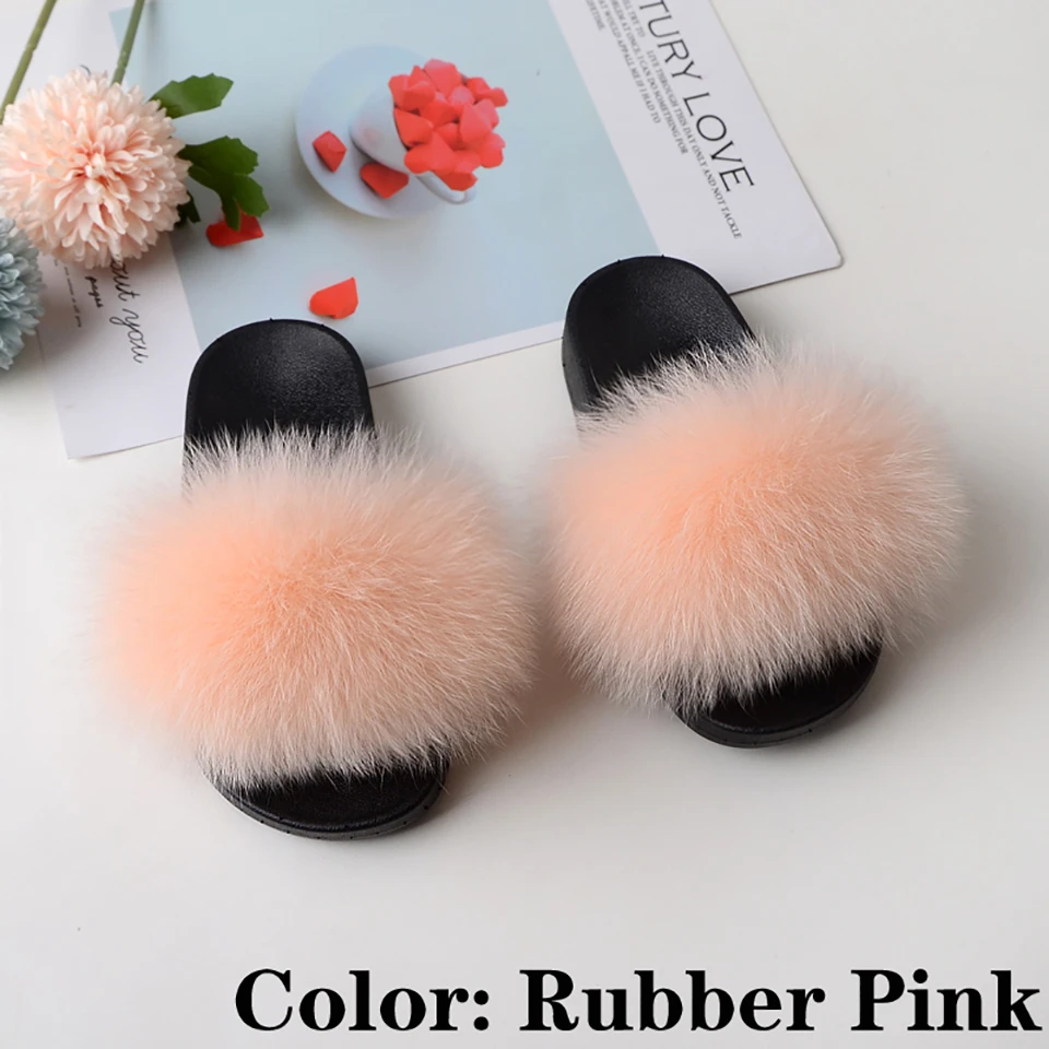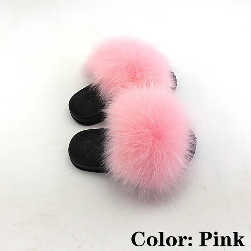 Шлепанцы Детские с натуральным мехом, сланцы для дома, летняя сандалии с мехом обувь для девочек, домашние тапочки, Прямая поставка