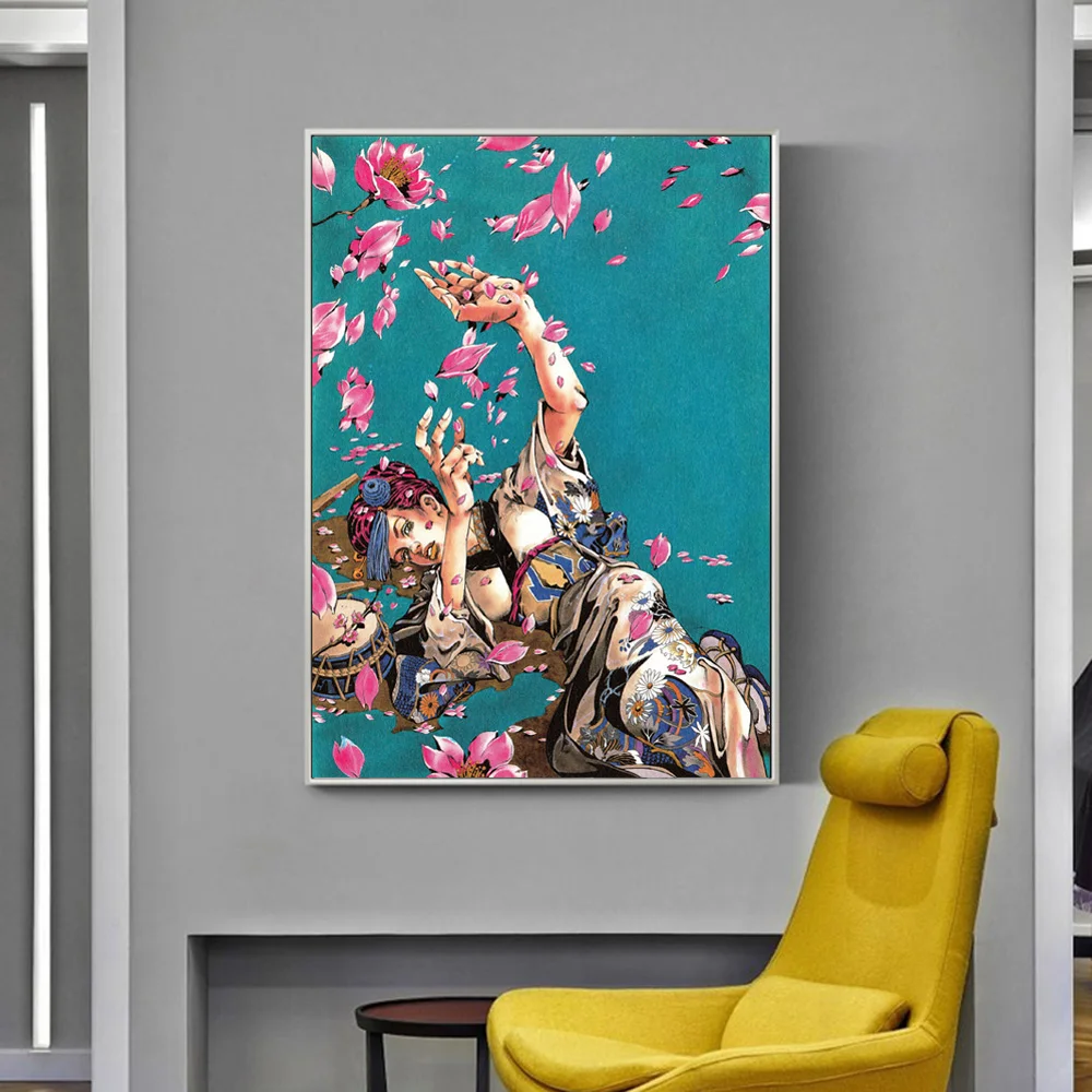 Jolyne Кудзе для танцев для девочек в цветочек с рисунком из аниме Плакаты и принты Гостиная настенные картины на Wall Art Картина на холсте, украшение Плакаты