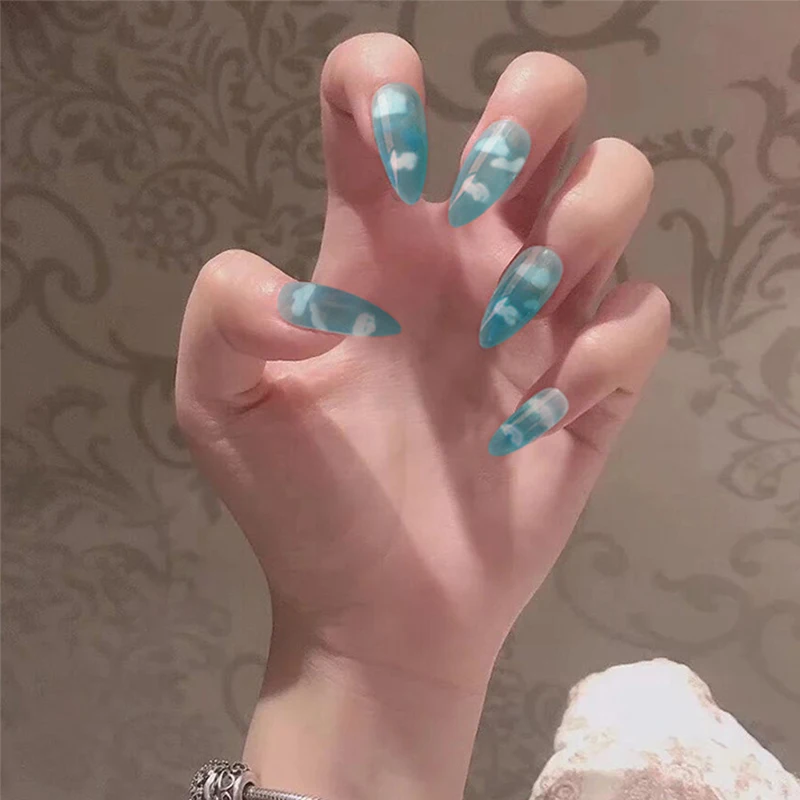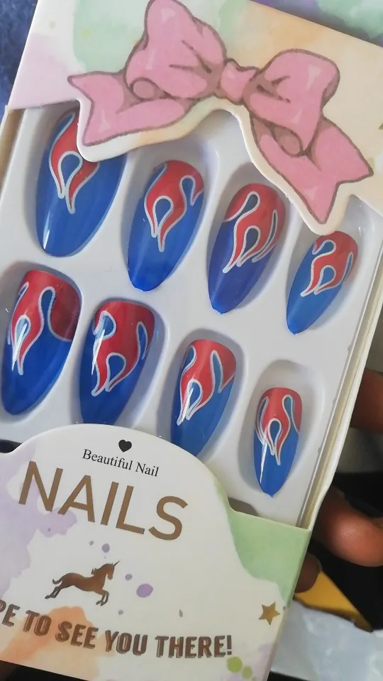 24 шт.компл. искусственные ногти в стиле панк с узором огня, полное покрытие, европейские Длинные Типсы для дизайна ногтей, женские готовые наклейки на ногти