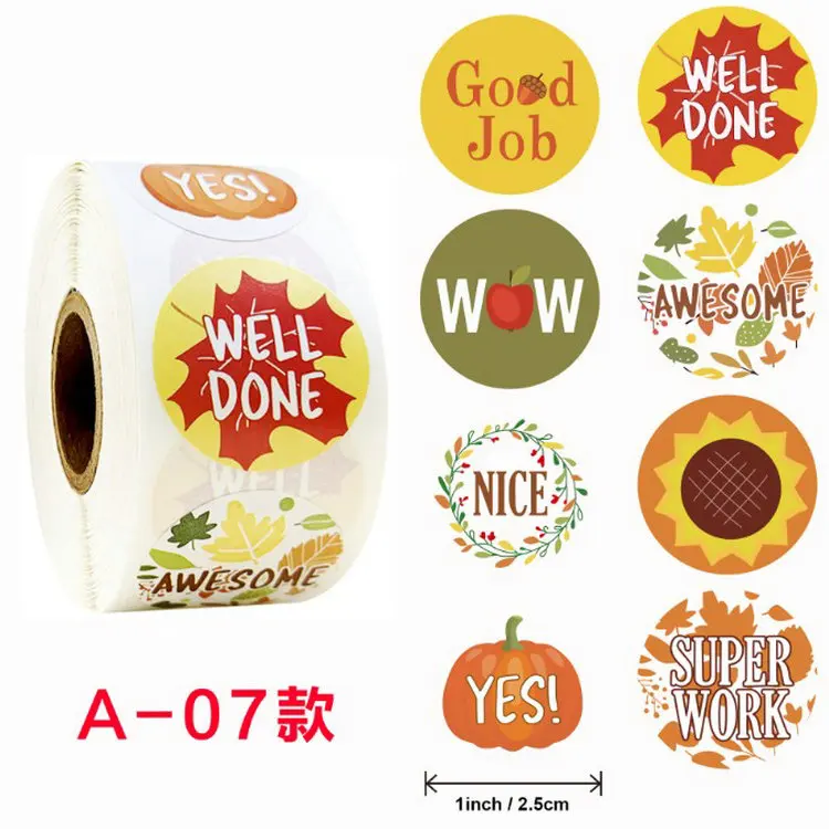 1 рулон = 500 шт.лот 1 дюйм, бумажные наклейки для детей, этикетка для поощрения, товары для рождества, Хэллоуина, этикетка для детского сада, подарки для награждения