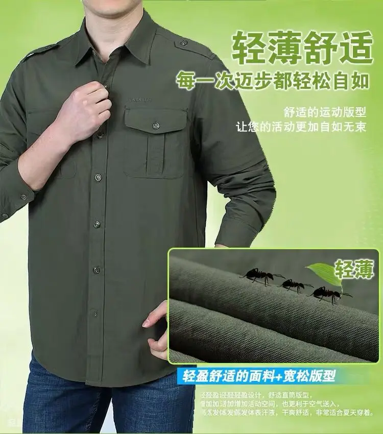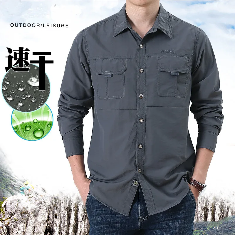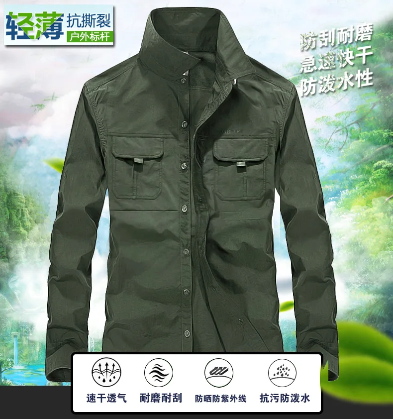 Мужской повседневный спортивный костюм, быстросохнущая уличная рубашка, Мужская свободная тонкая Водонепроницаемая тактическая рубашка большого размера на весну и лето