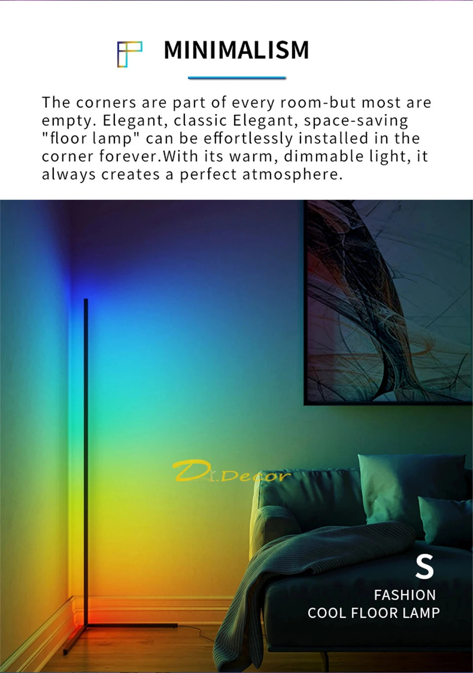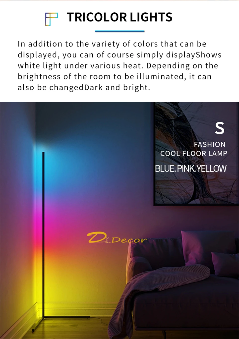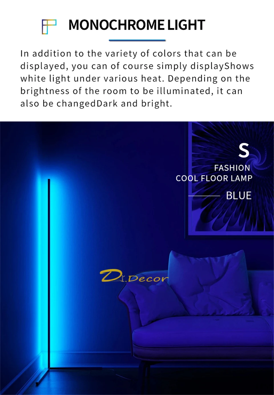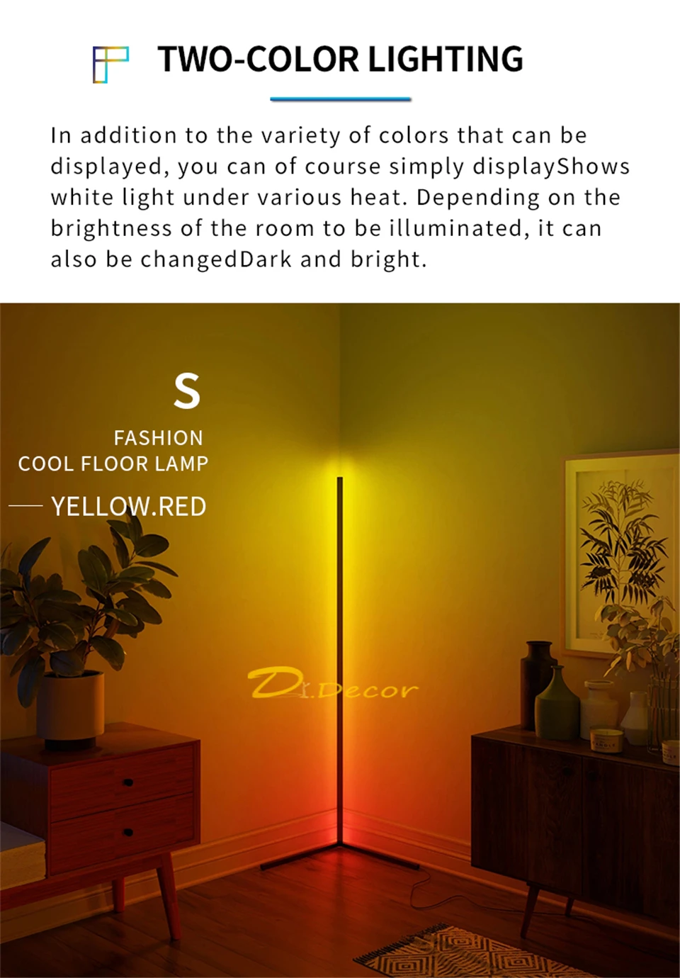 Современный RGB светодиодный Угловой торшер, комнатное декоративное освещение для спальни, гостиной, цветной стоячий светильник