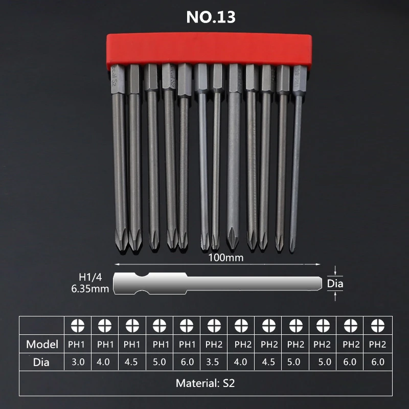 Набор отверток, комплект из 12 магнитных шестигранных насадок, S2 сталь, 14 дюйма, с шестигранной ручкой, для украшения дома и сада